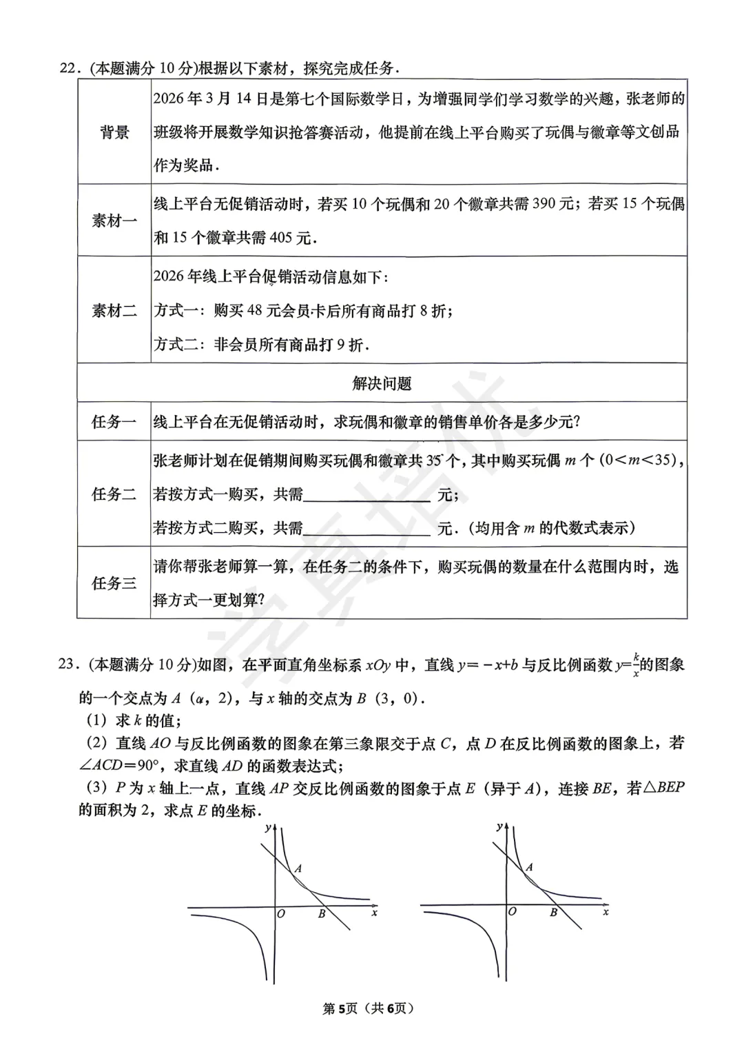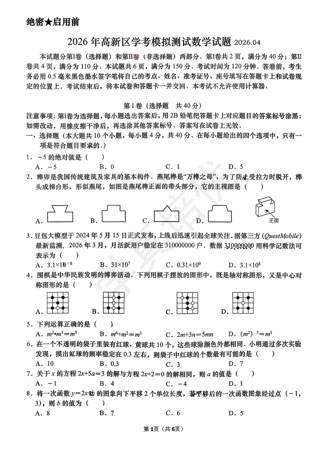 >2026.4高新区一模数学试卷及答案