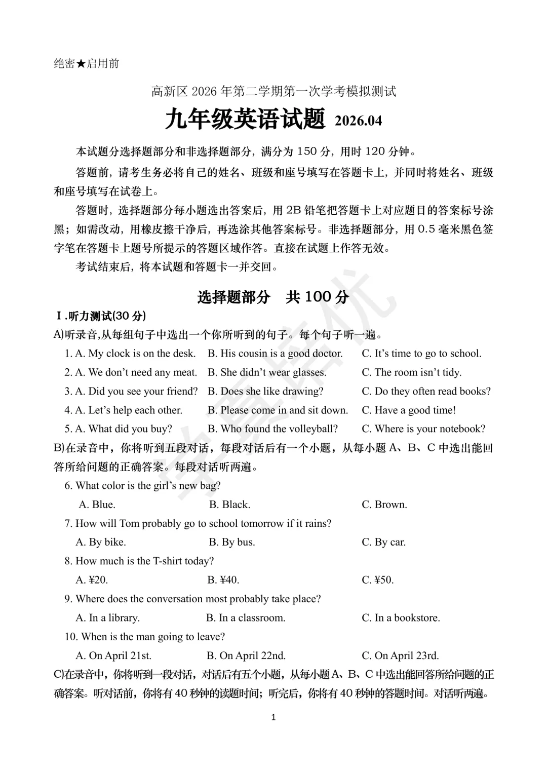 2026南京中考零模试卷,一中集团、金中集团、钟英、鼓实、南外等多校汇总