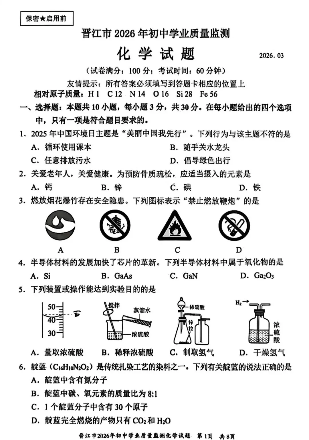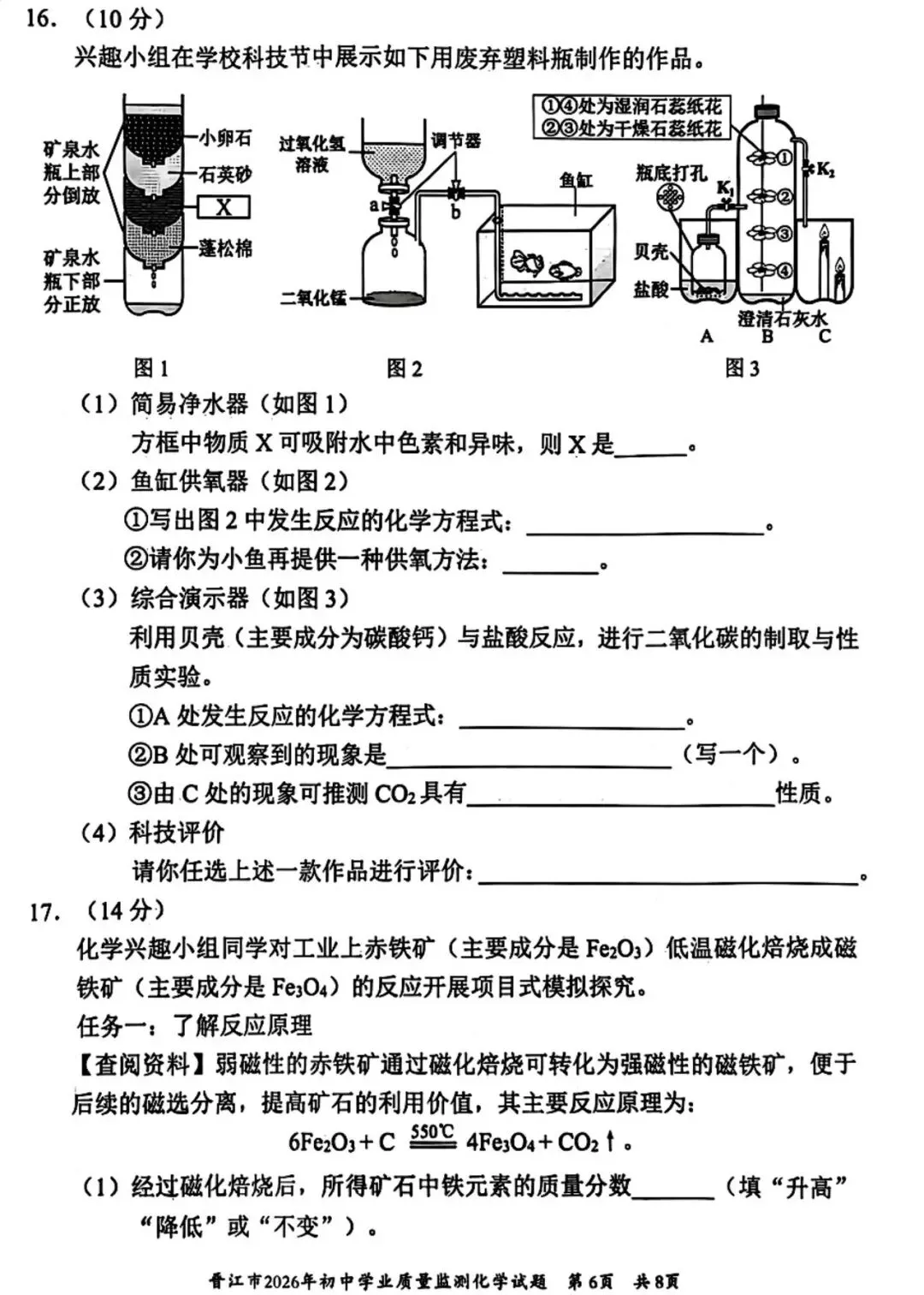 【试卷分享】2026初三 3月泉州市晋江市 化学试卷