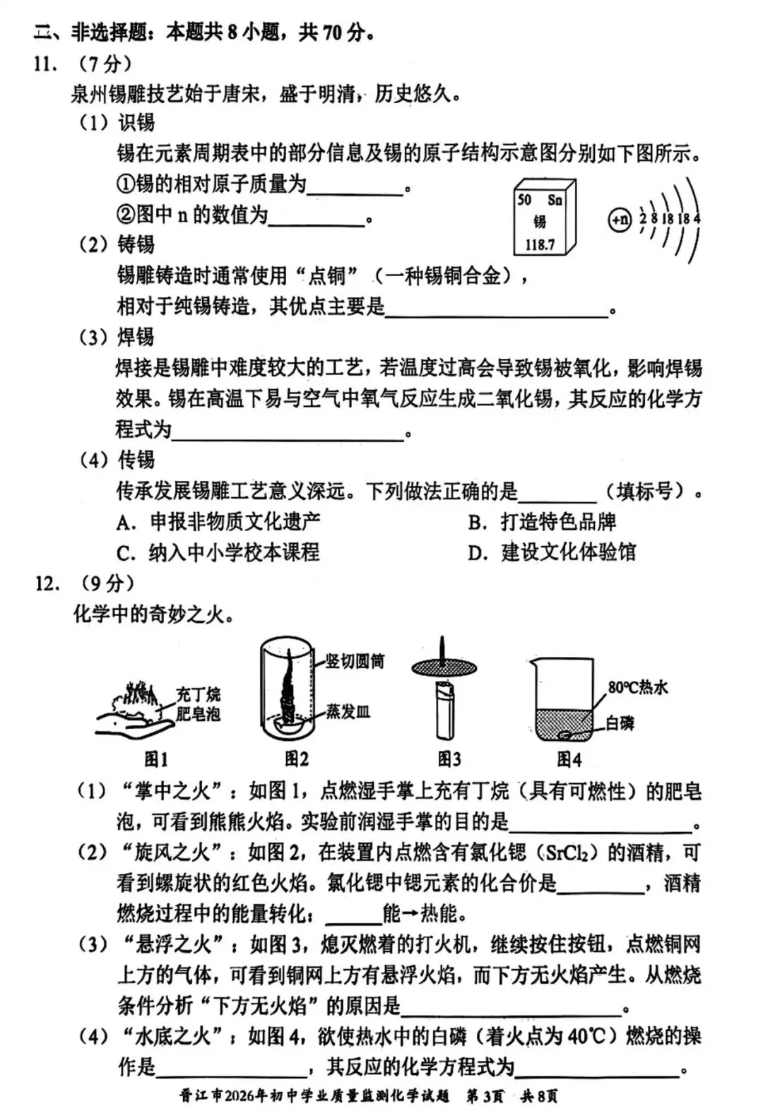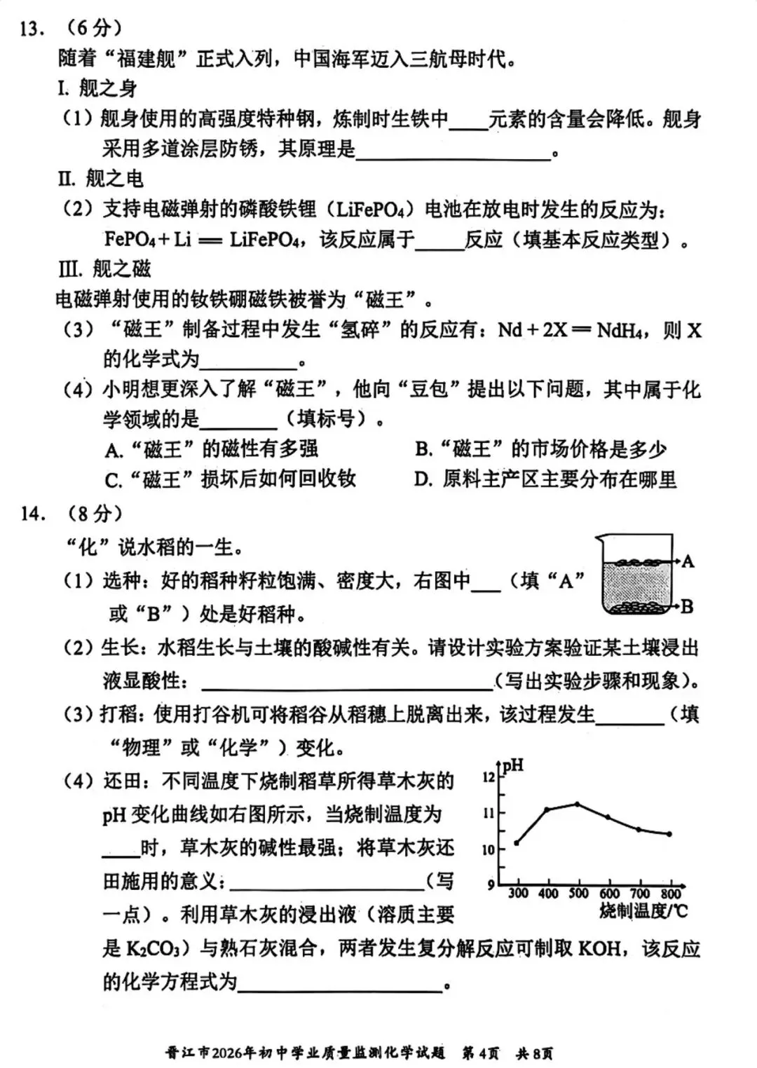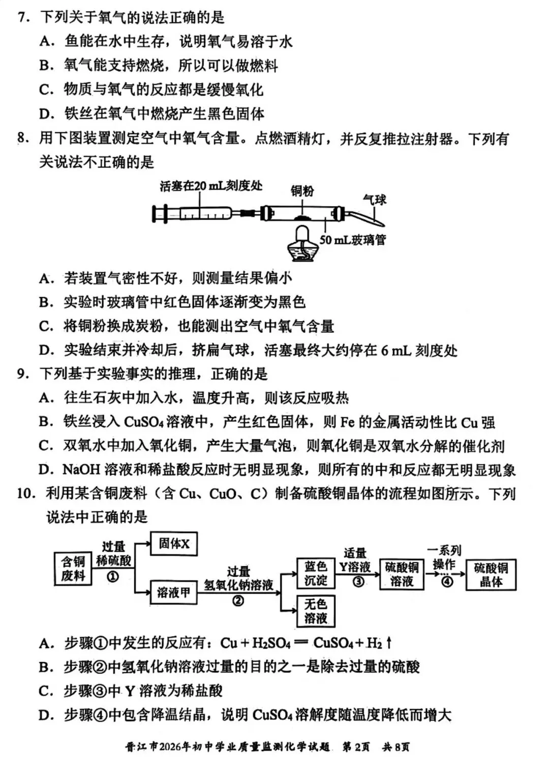 >【试卷分享】2026初三 3月泉州市晋江市 化学试卷