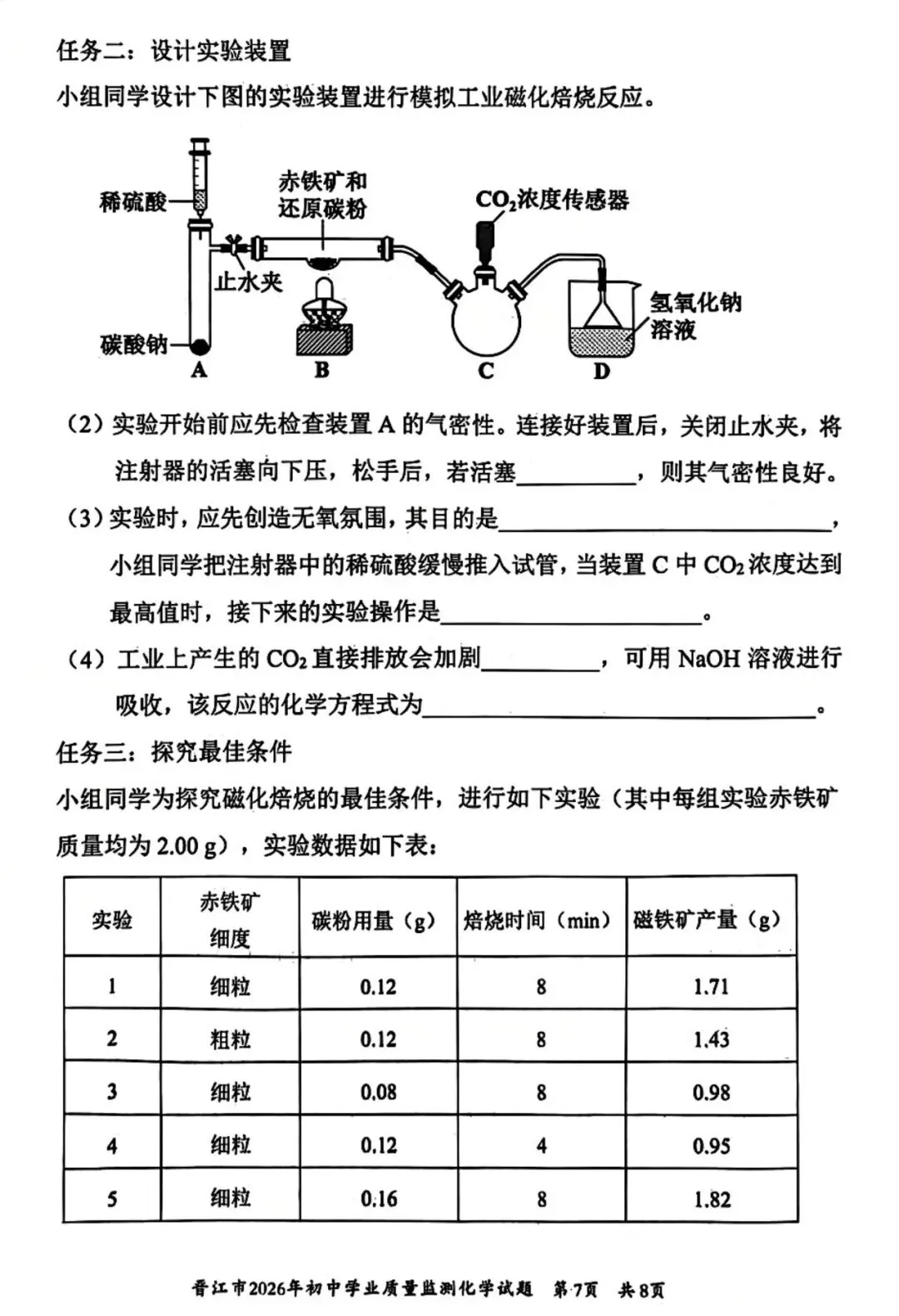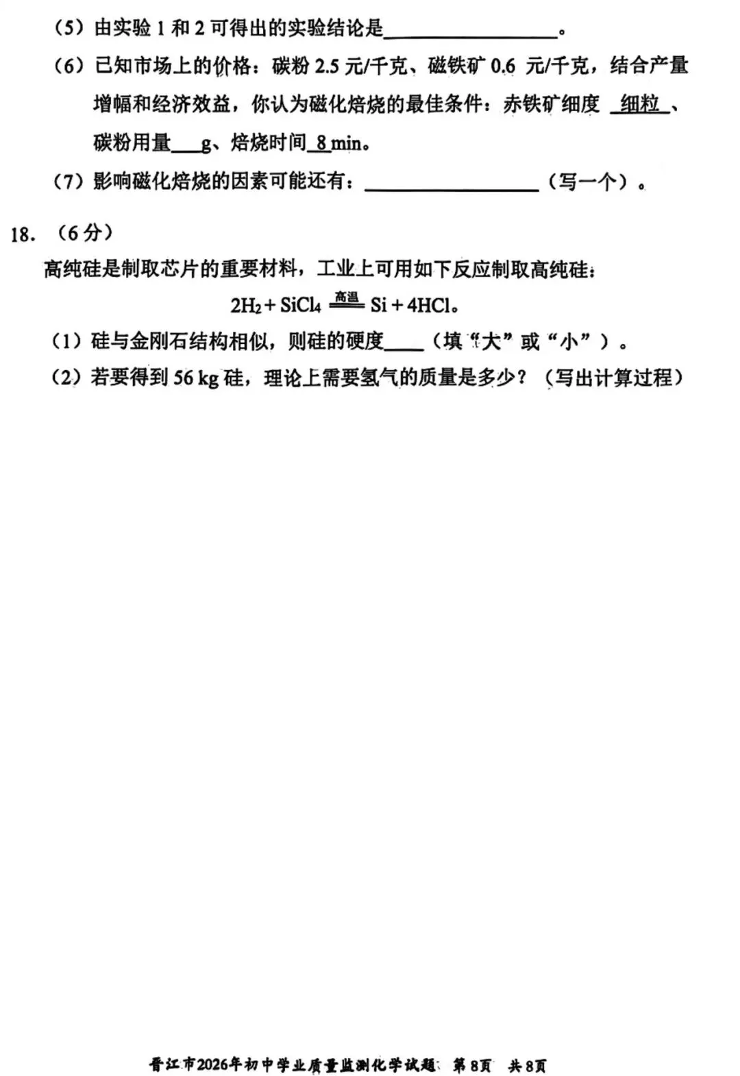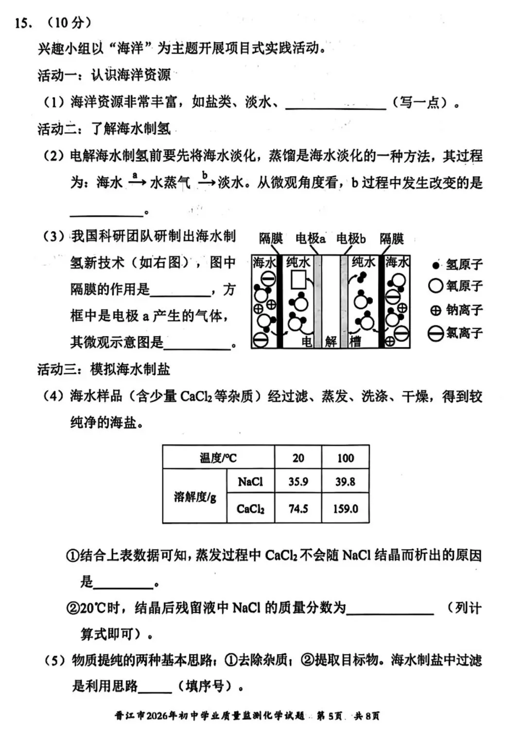 >【试卷分享】2026初三 3月泉州市晋江市 化学试卷