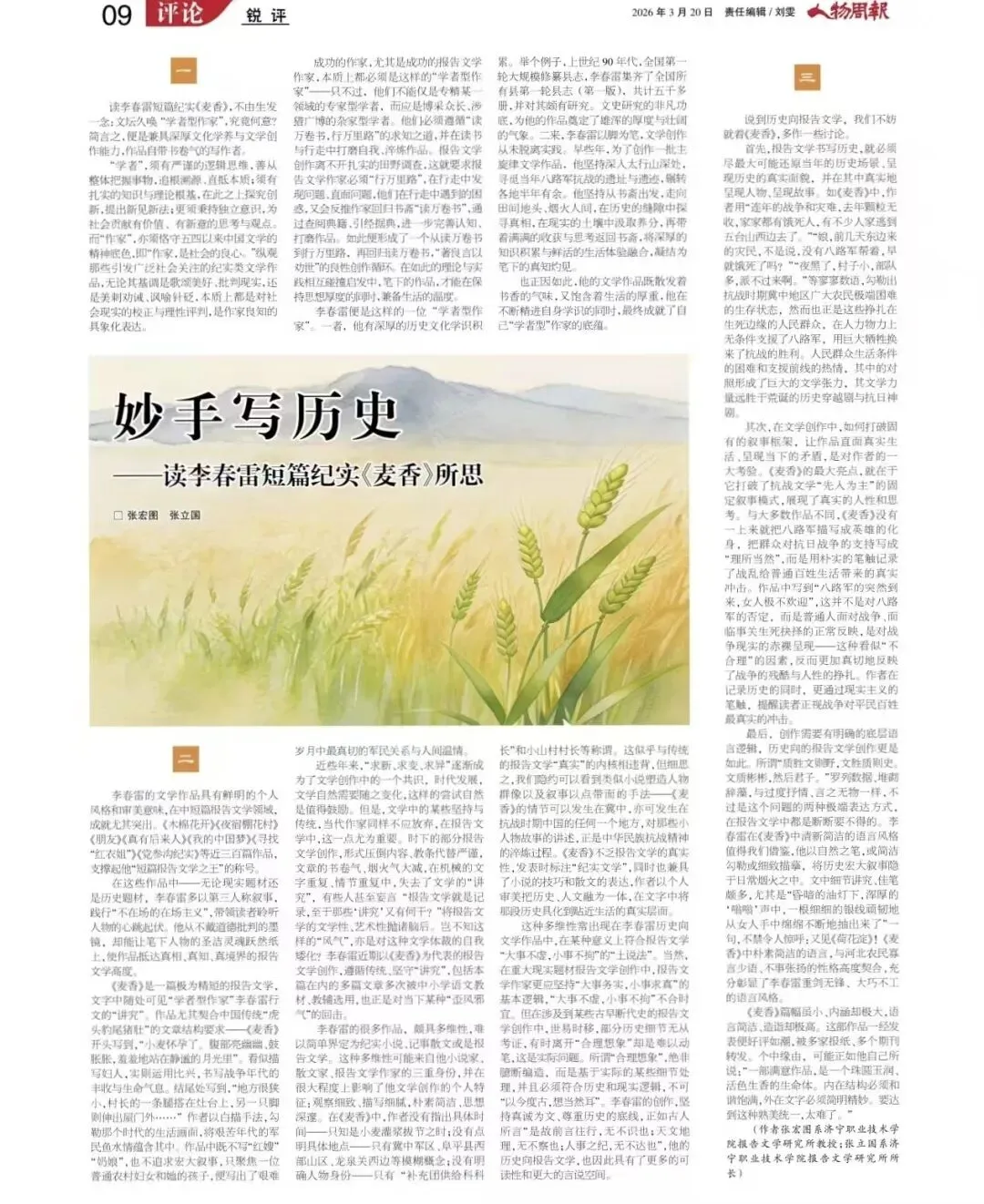 (张宏图、张立国先生评论,发表于2026年3月20日《人物周报》)