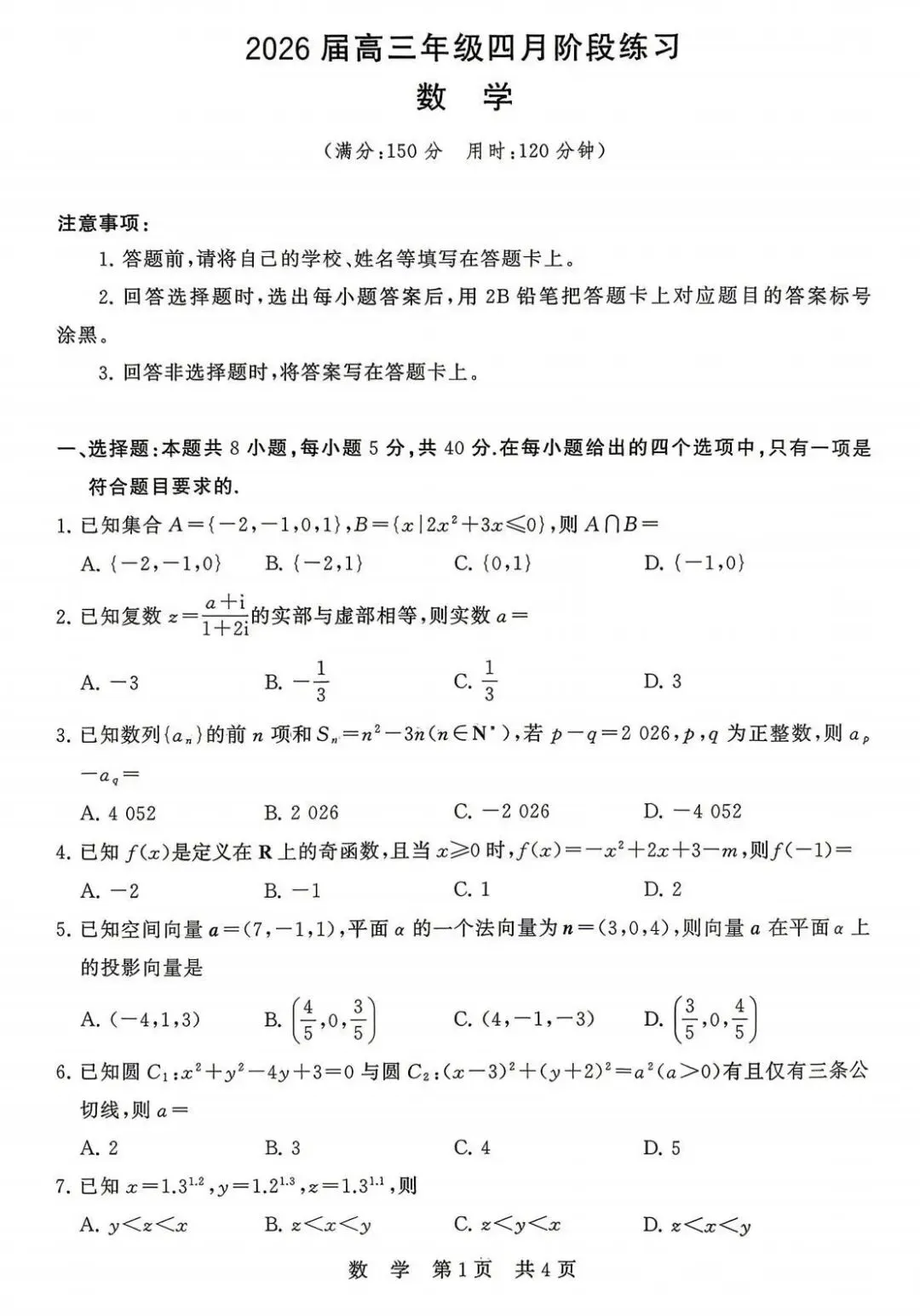 满分150分,时间:120分钟