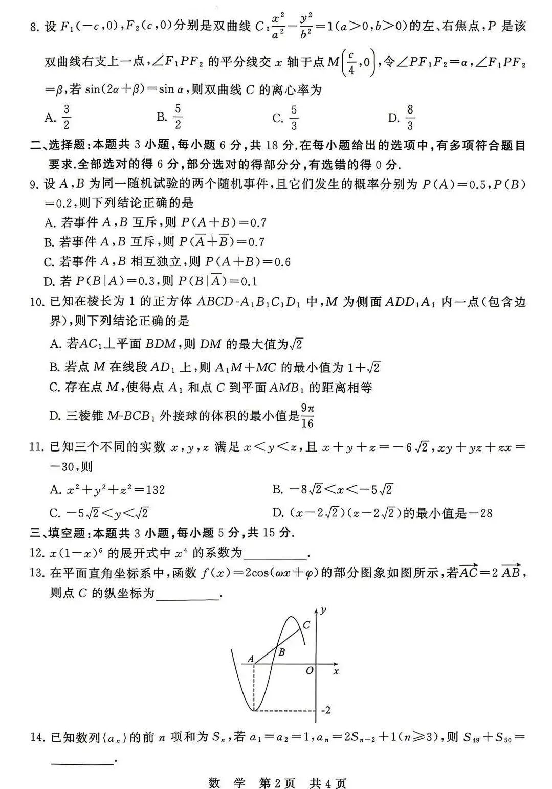 注意:其中考查函数图像、文化类题目概率较大、可能会考查逻辑推理题、新情境题目(小题均可)