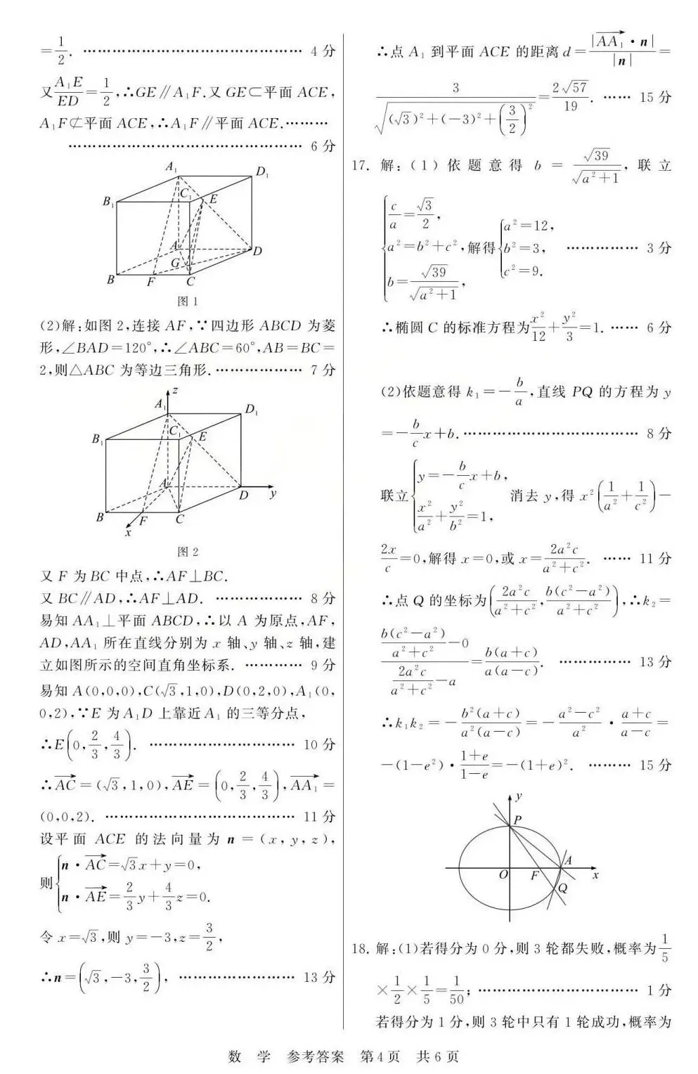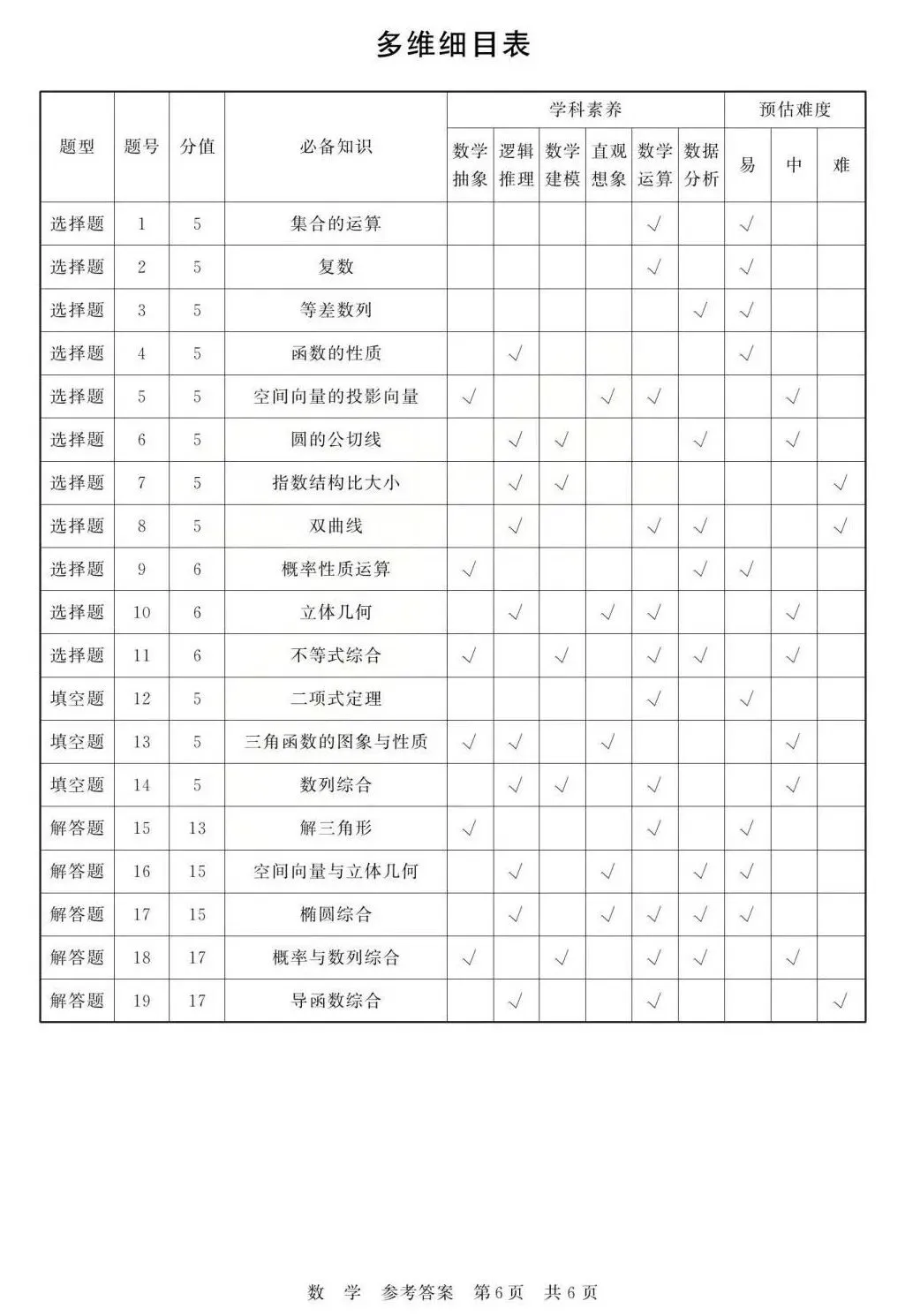 注意:解答题考查的为三角函数、立体几何、数列、概率统计(或线性回归分析)、圆锥曲线、函数与导数。
