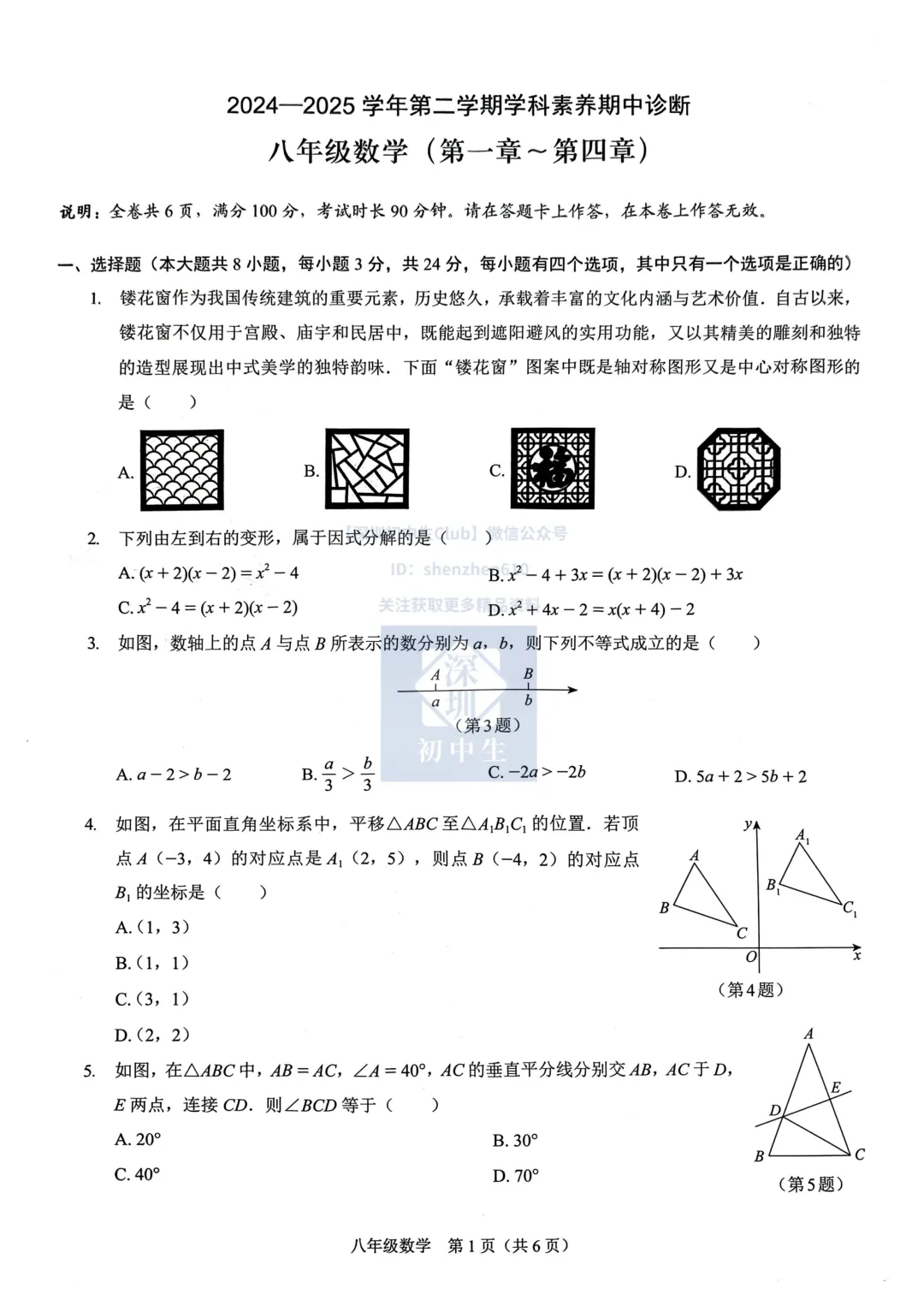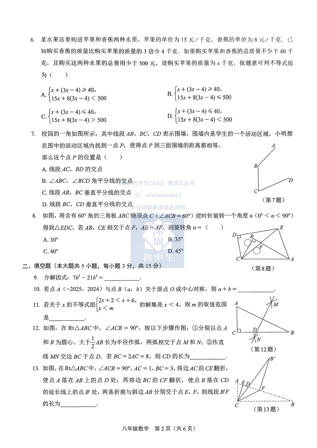 我们整理了2024-2025学年深圳龙岗区60校期中联考八年级数学试卷及参考答案,pdf版本可打印练习!
