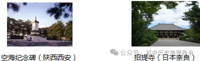 日本 | ② | 东渡日本 | 对日本文化的影响很大。 |