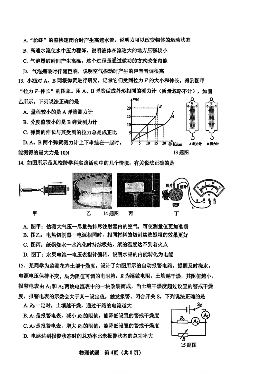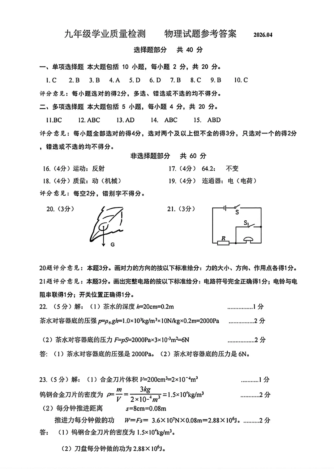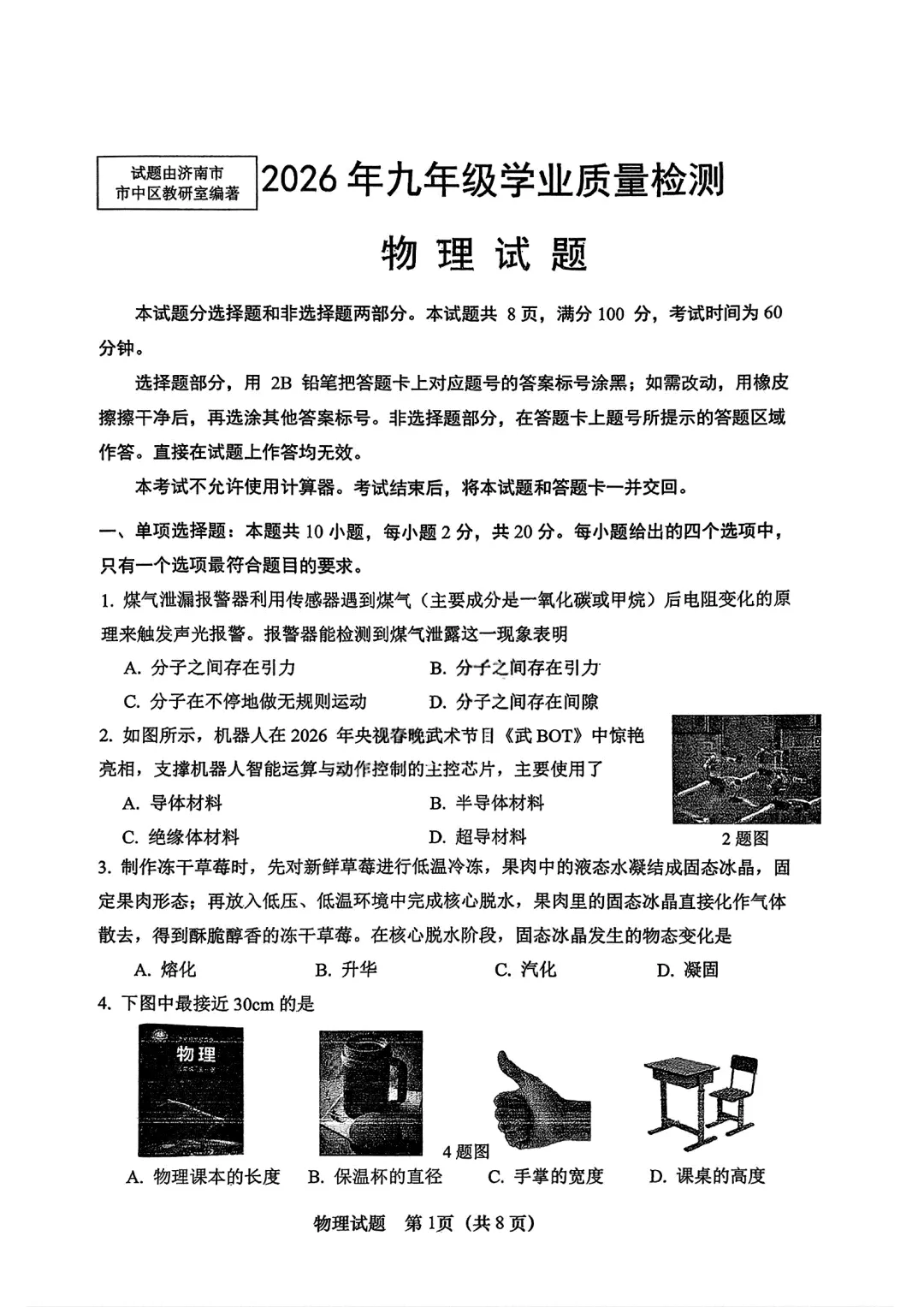 >【2026.4一模】济南市中一模物理试卷及解析(电子版直接下载即可)