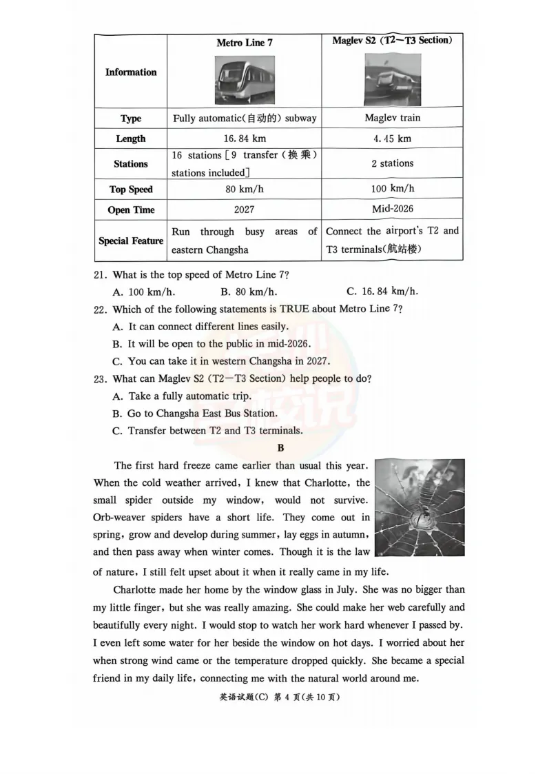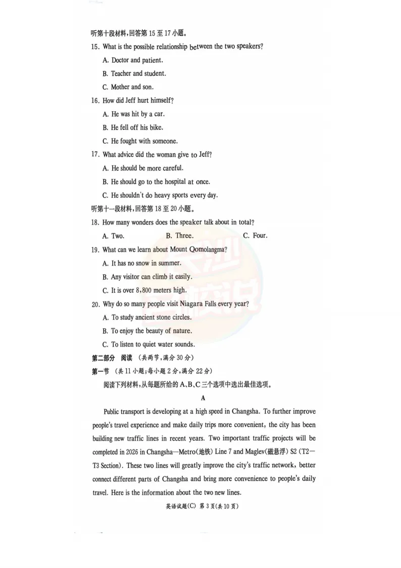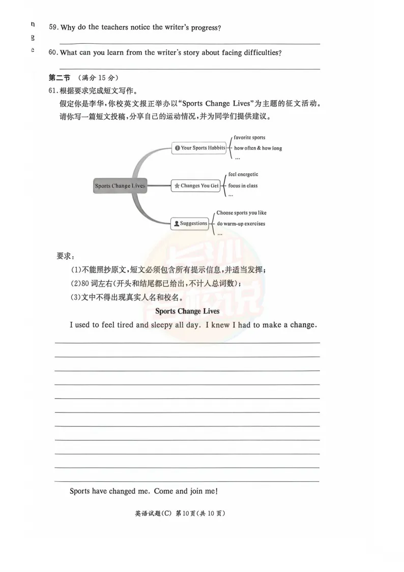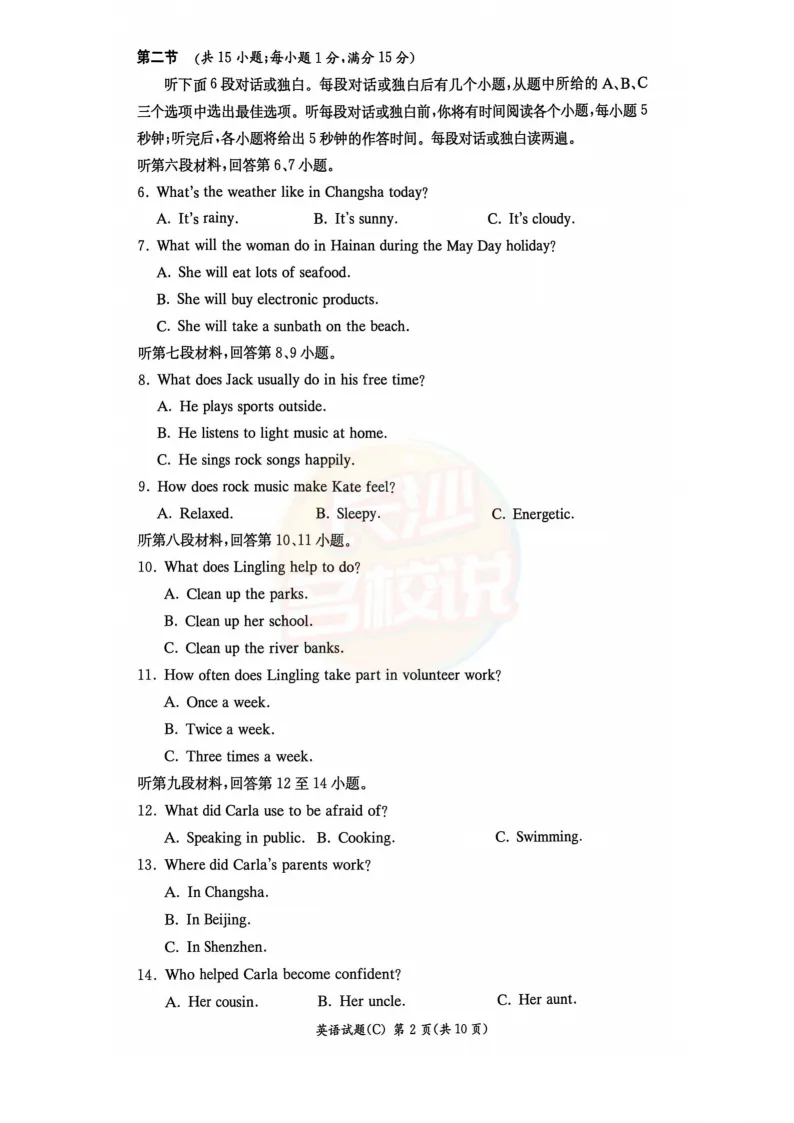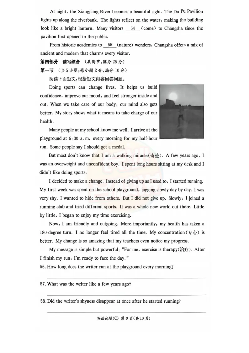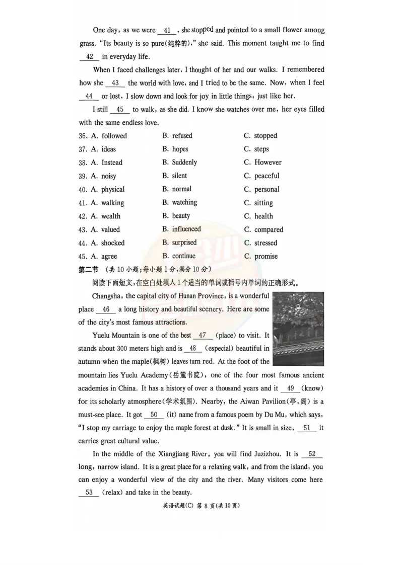 速看!2025年长沙中考试题及答案