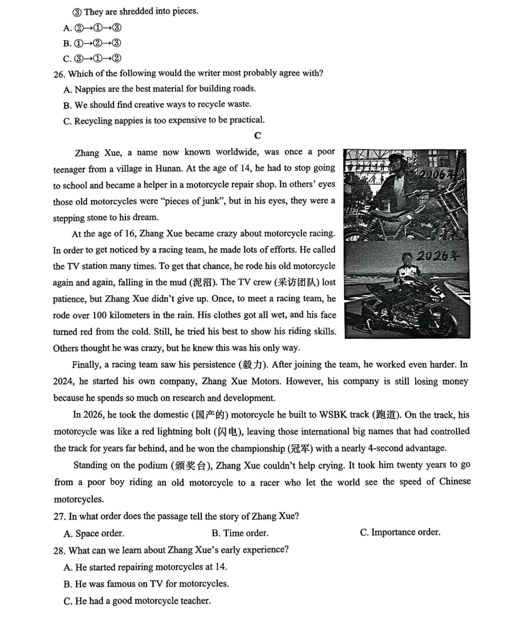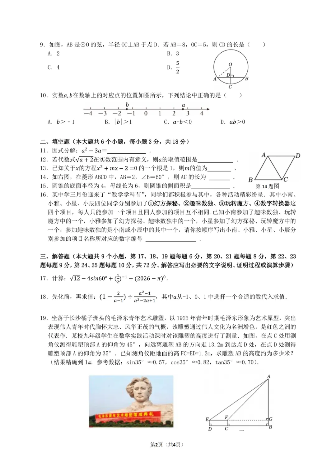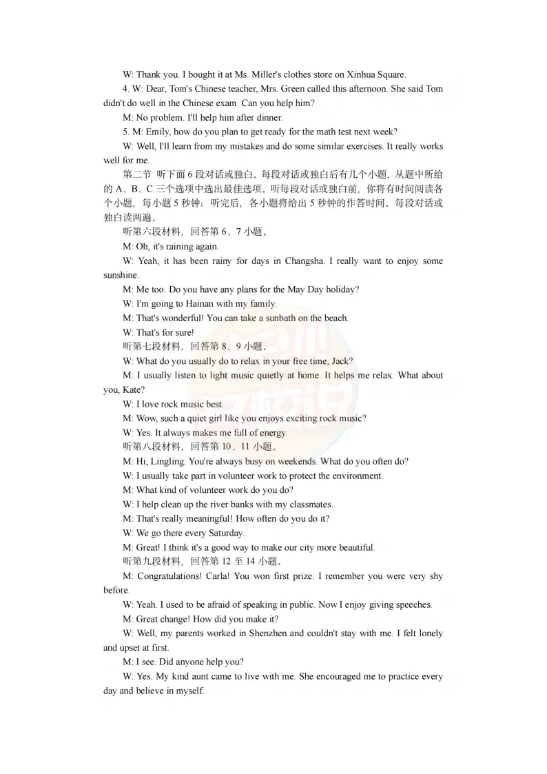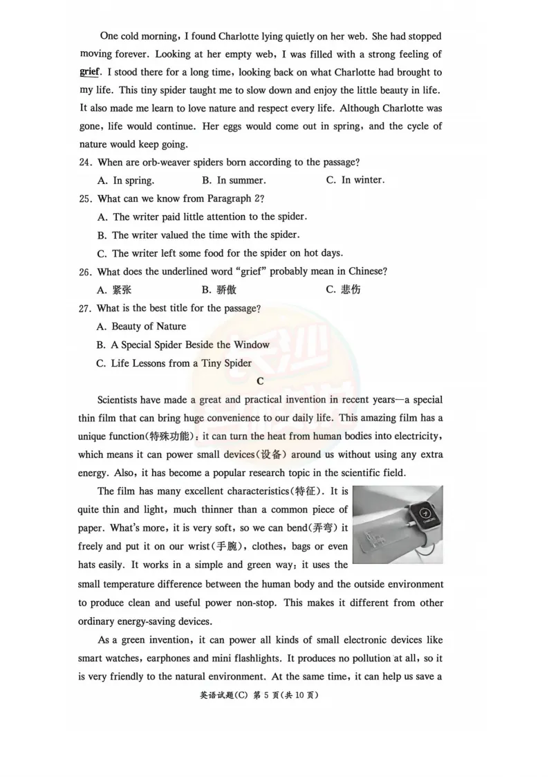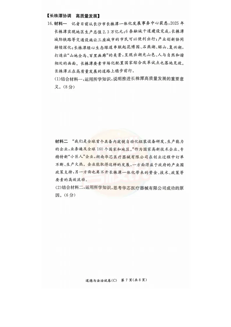 速看!2025年长沙中考试题及答案