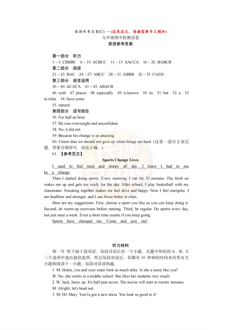 长郡英语试卷及答案