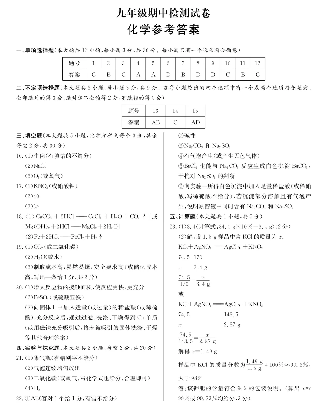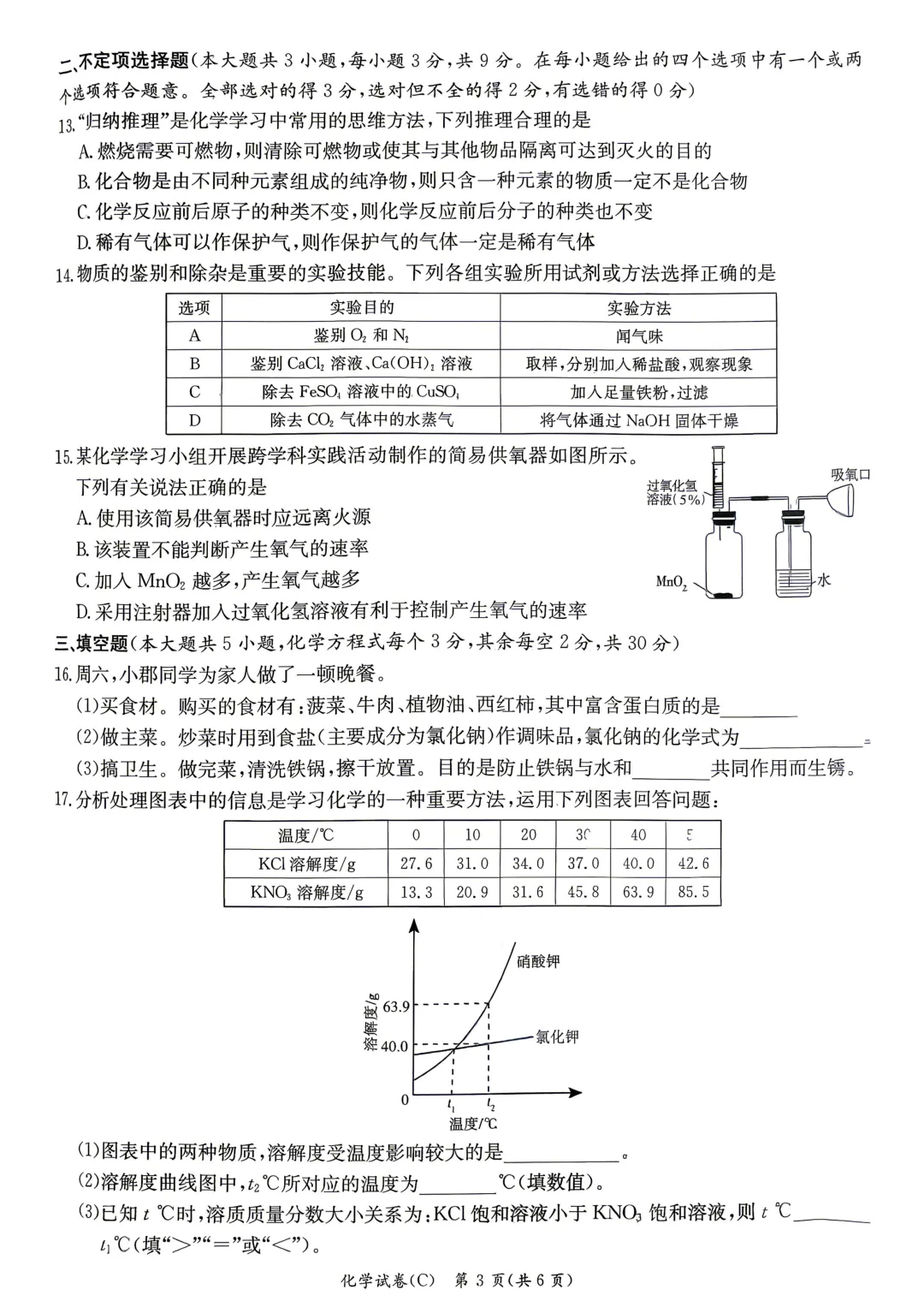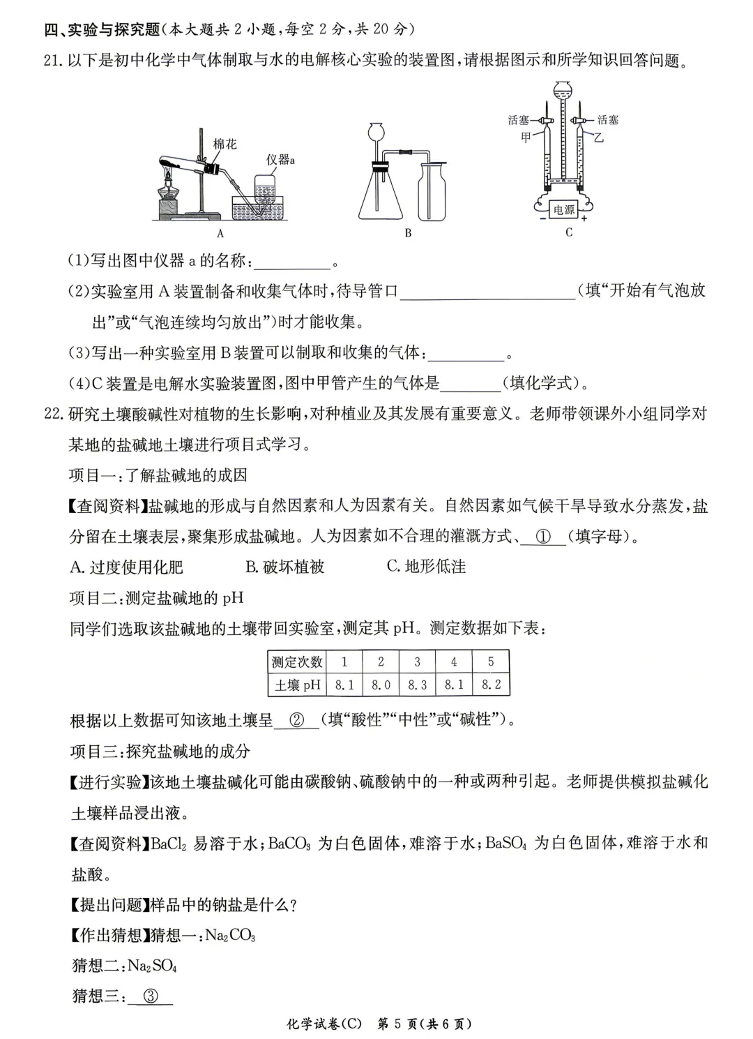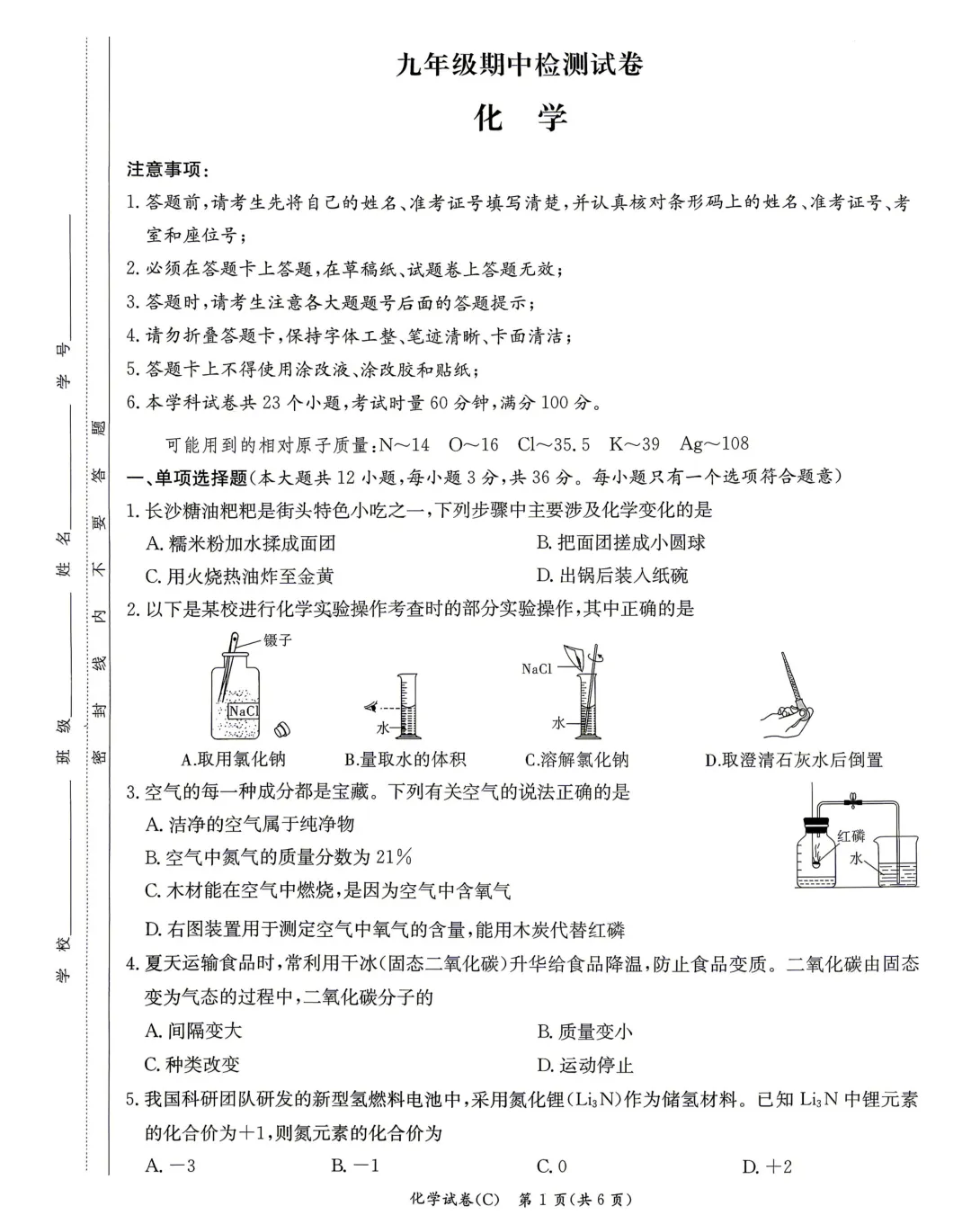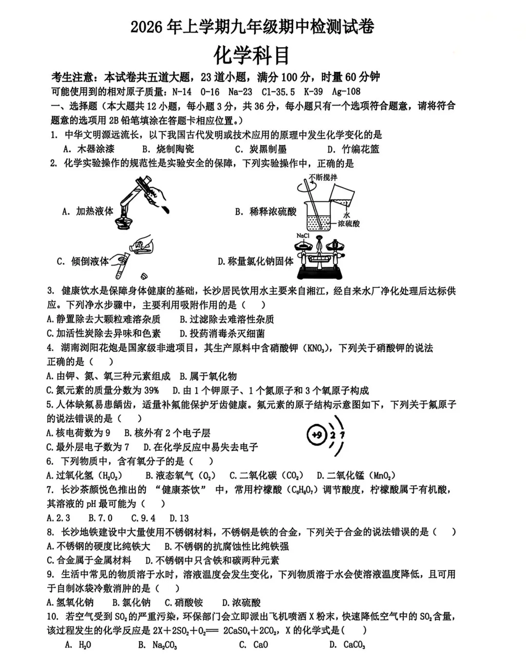 长郡化学试卷及答案