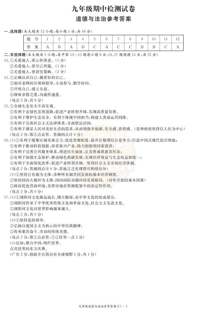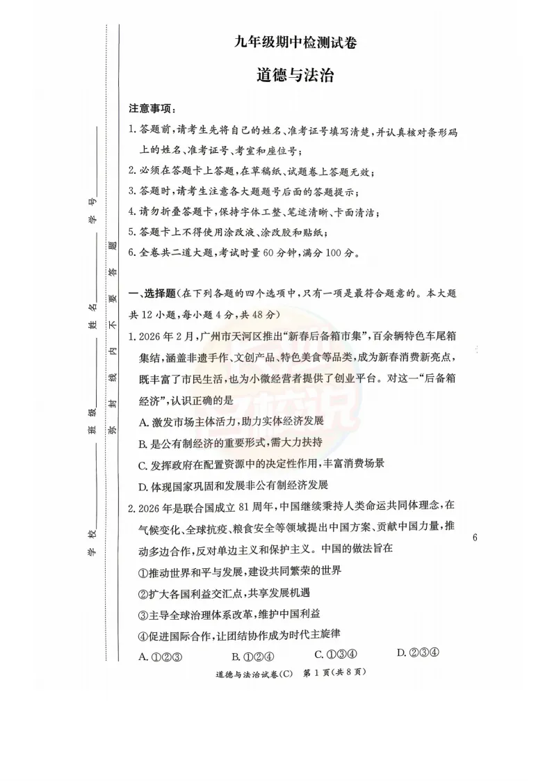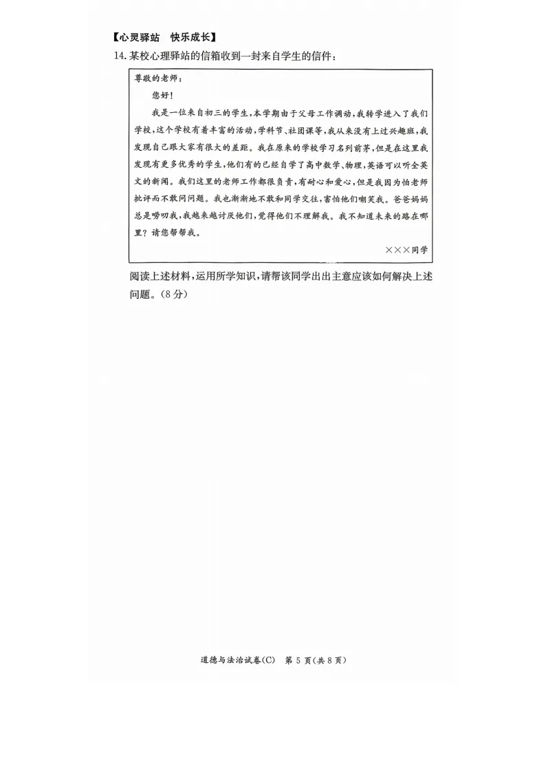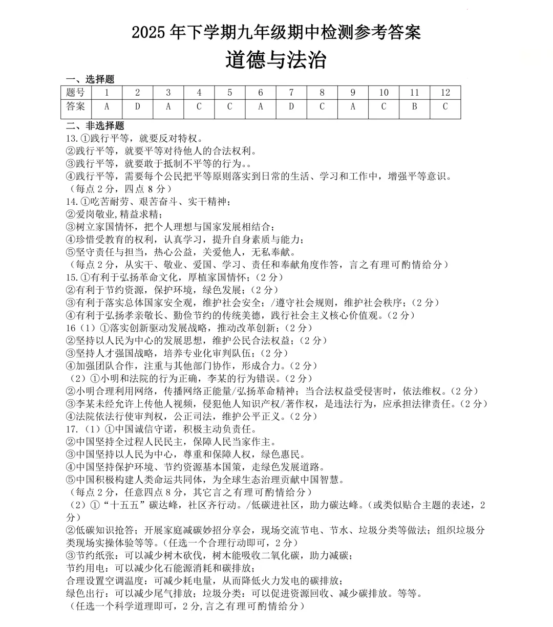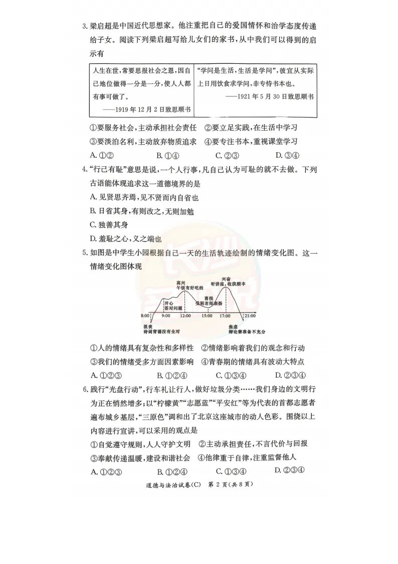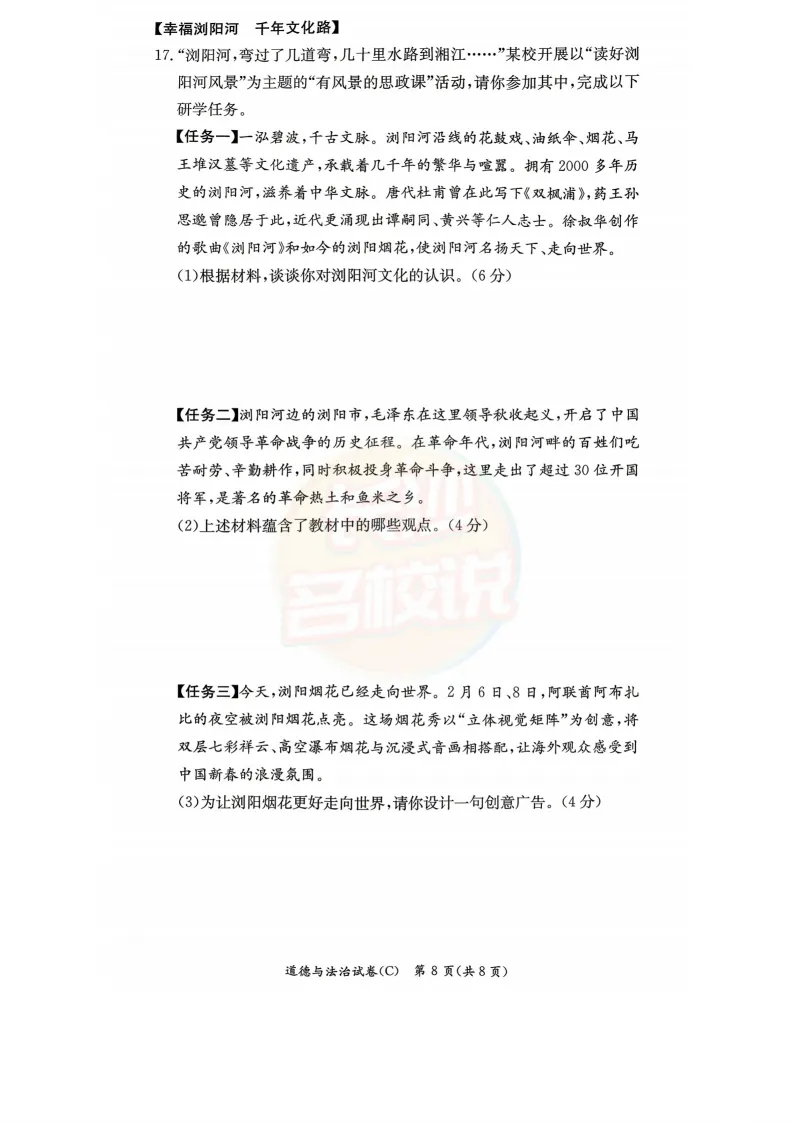 雅礼道法试卷及答案