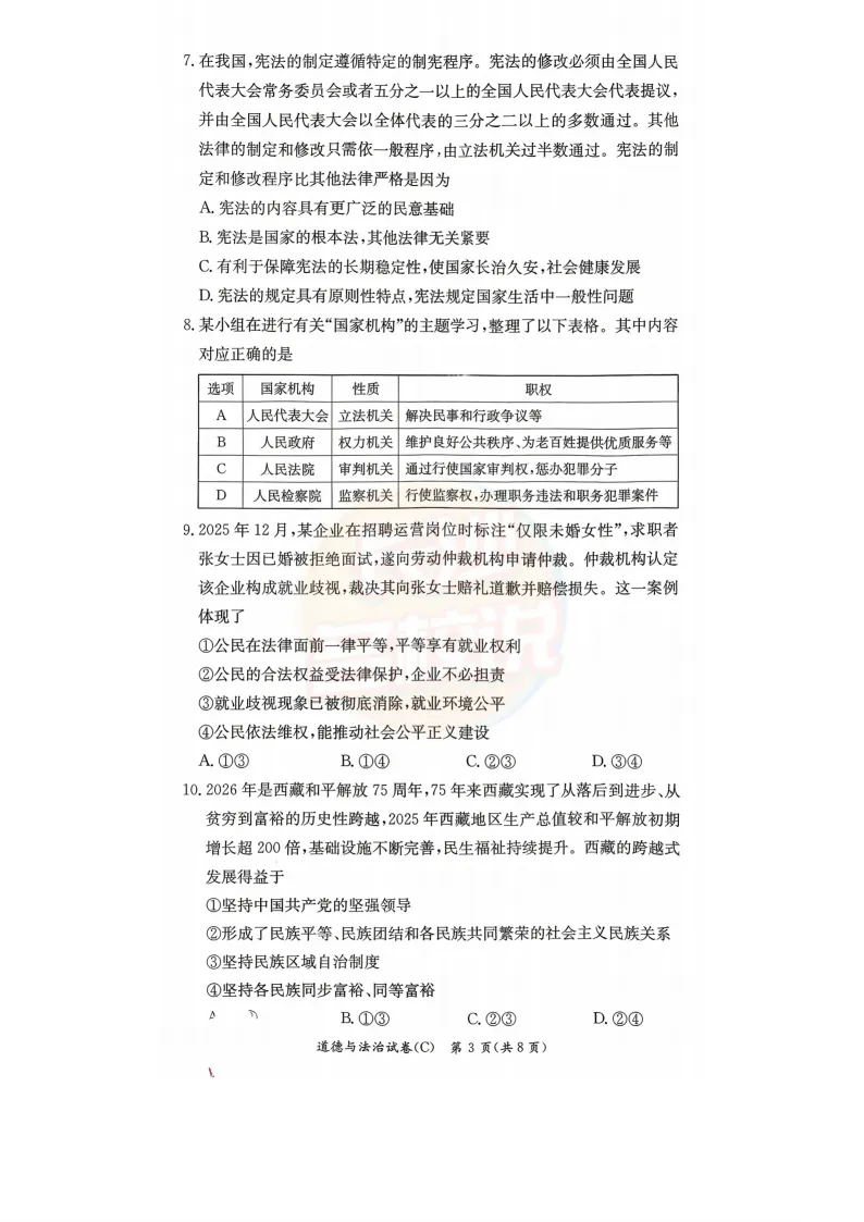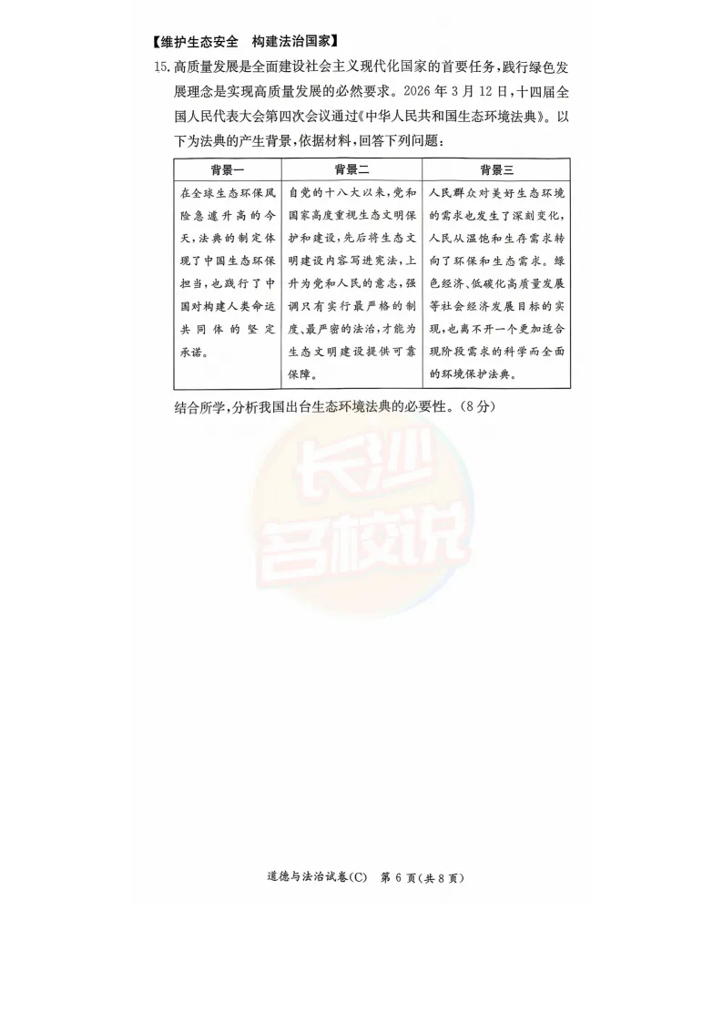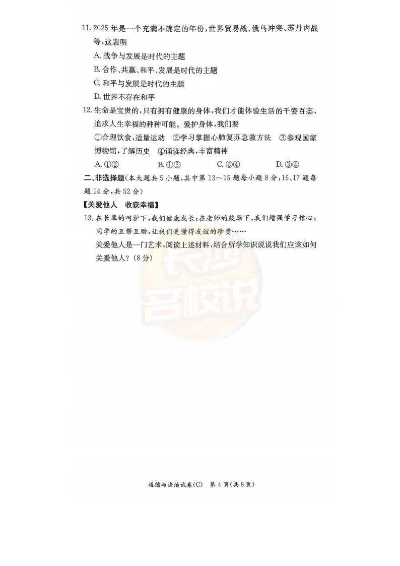 长郡道法试卷及答案