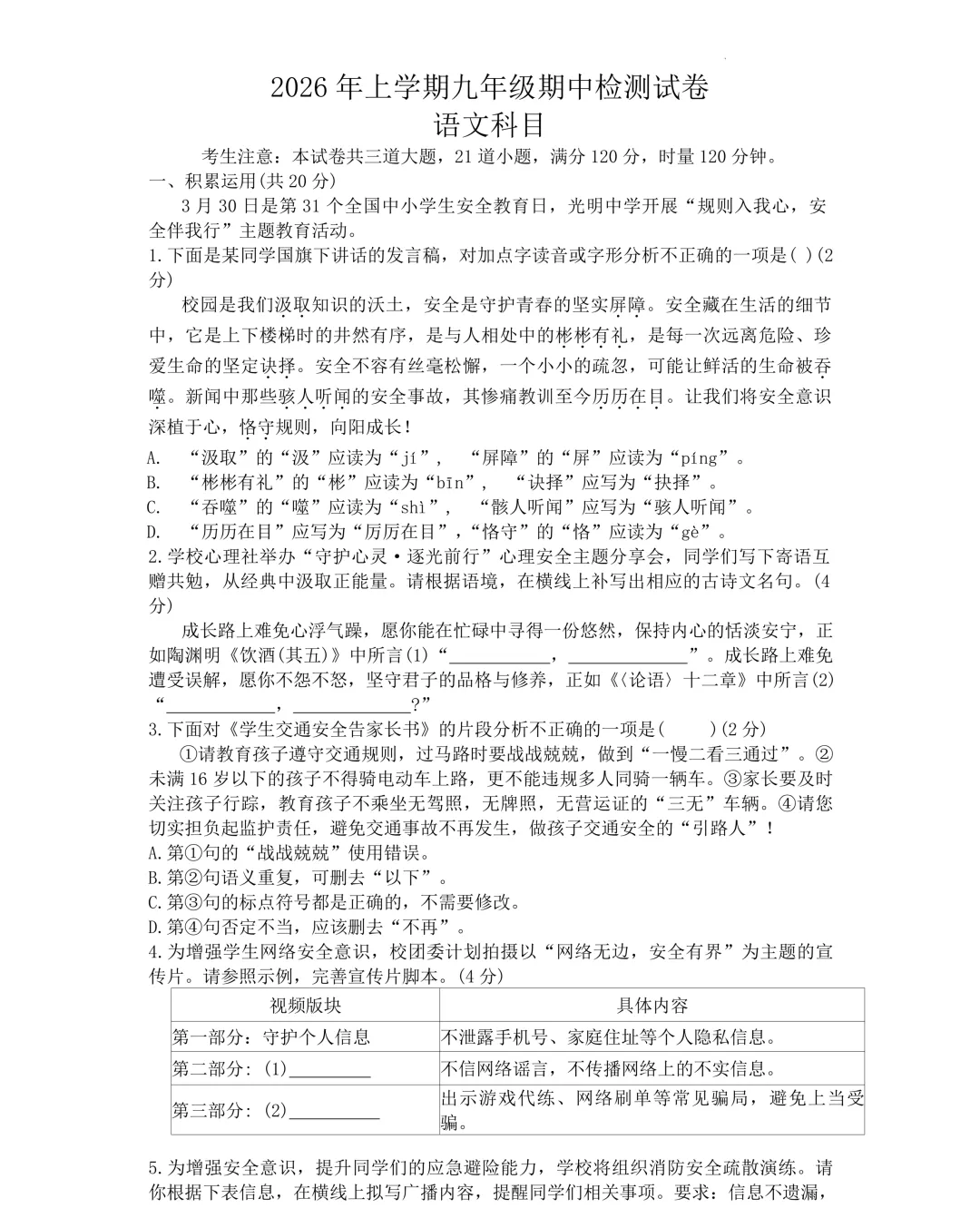 长郡语文试卷及答案
