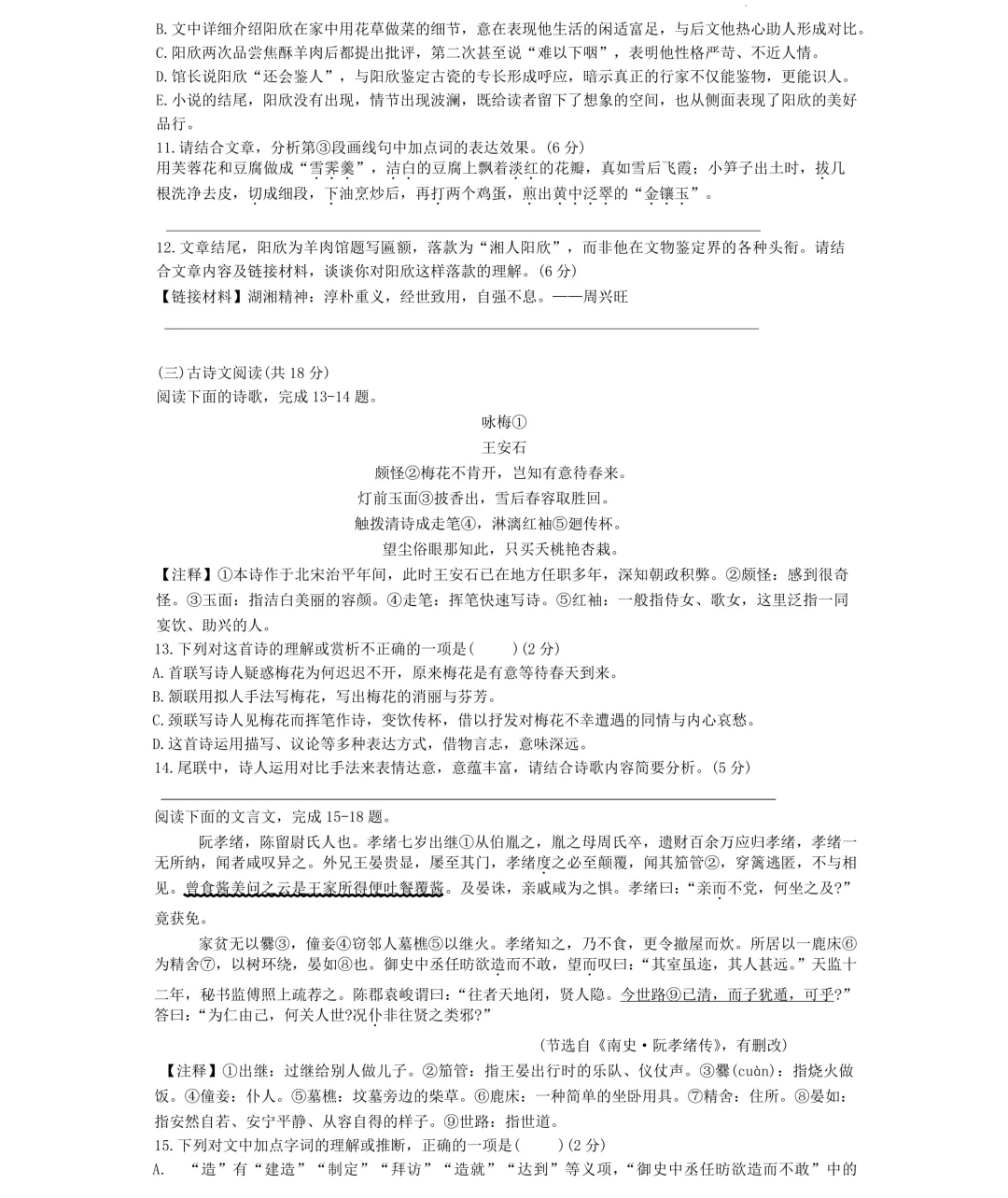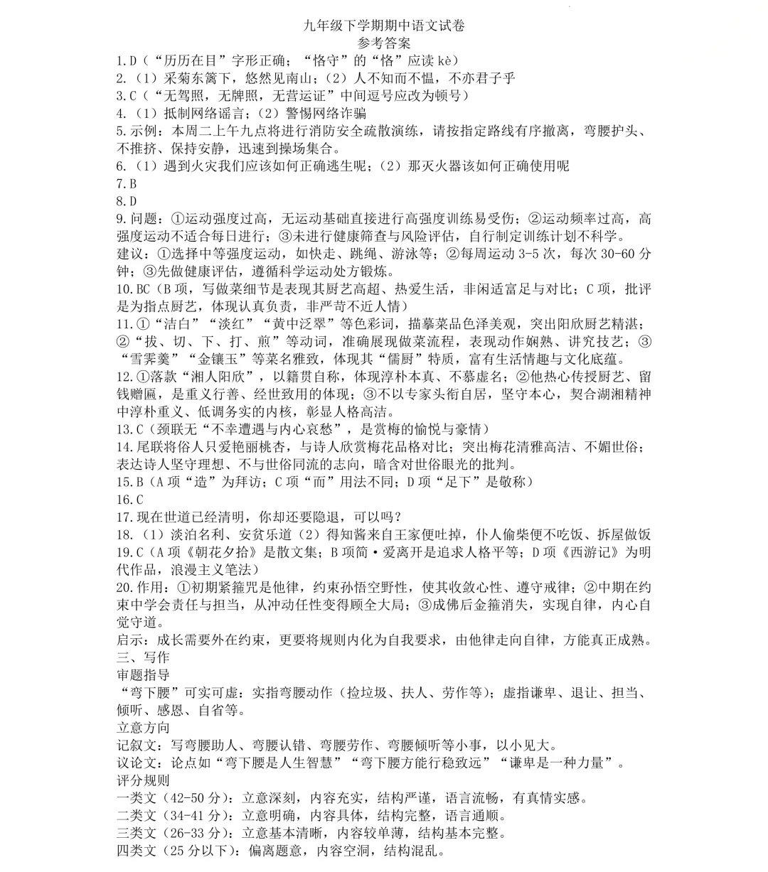 雅礼语文试卷及答案