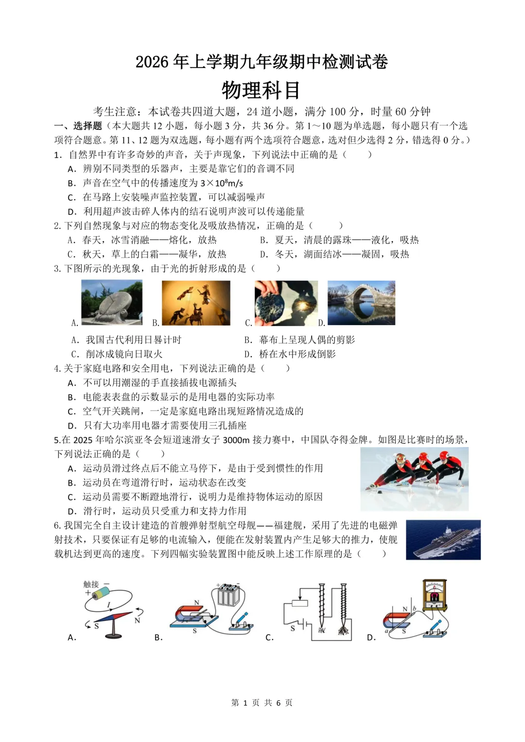 雅礼物理试卷及答案