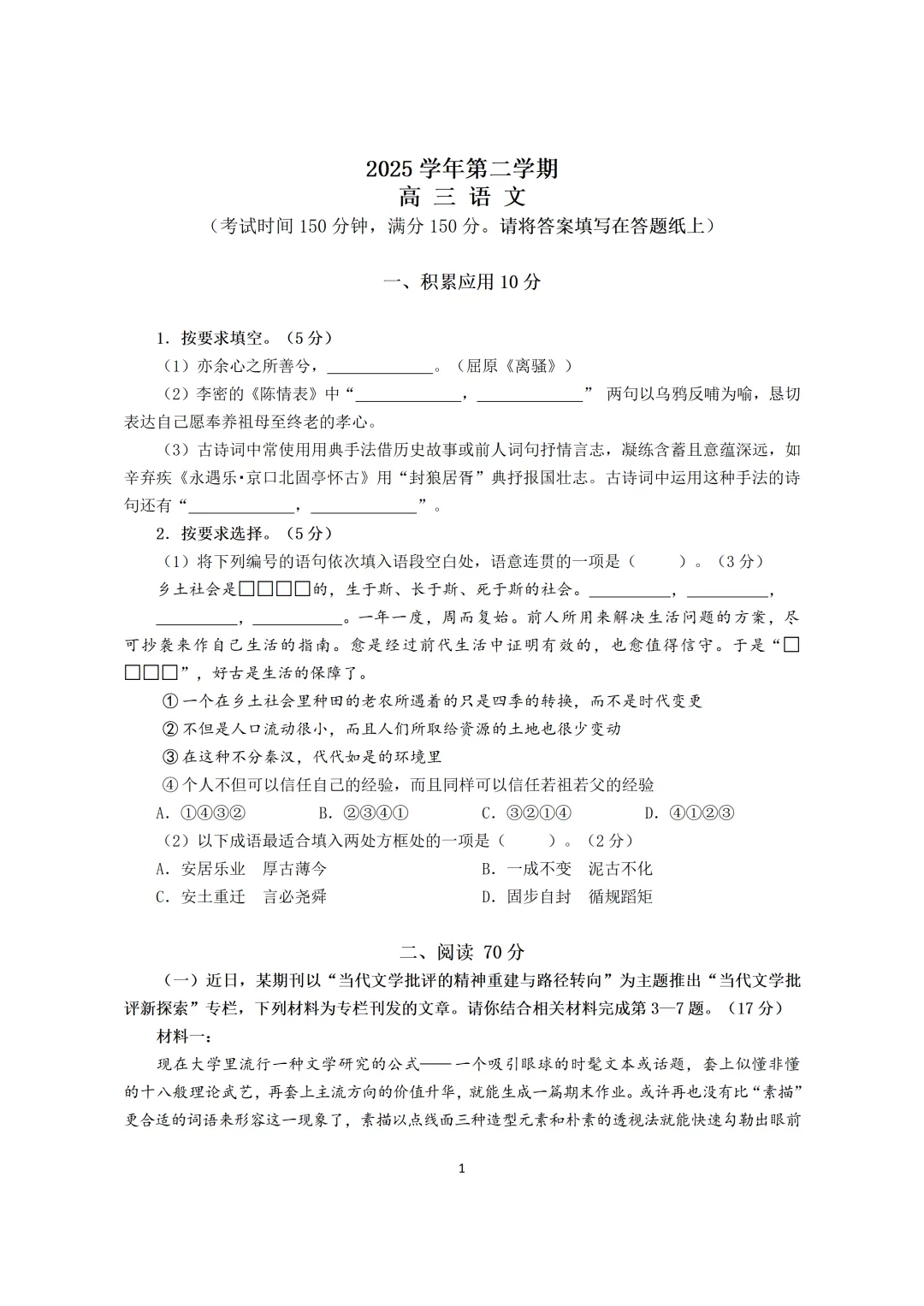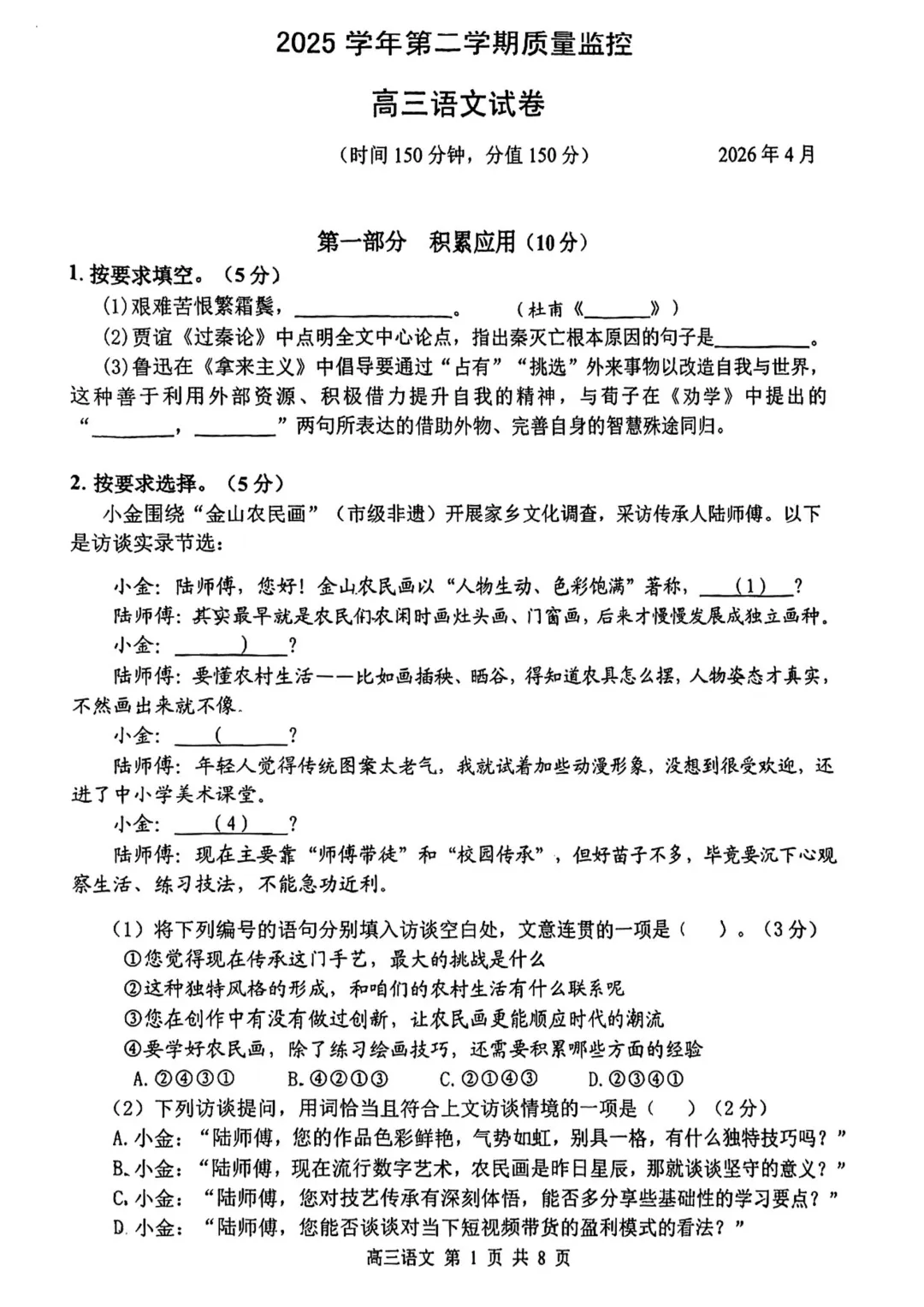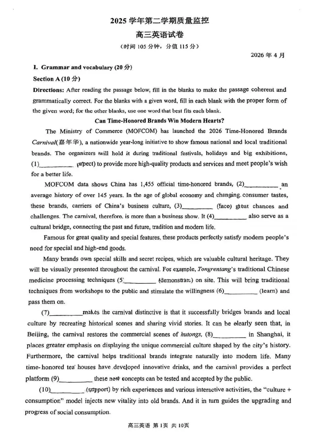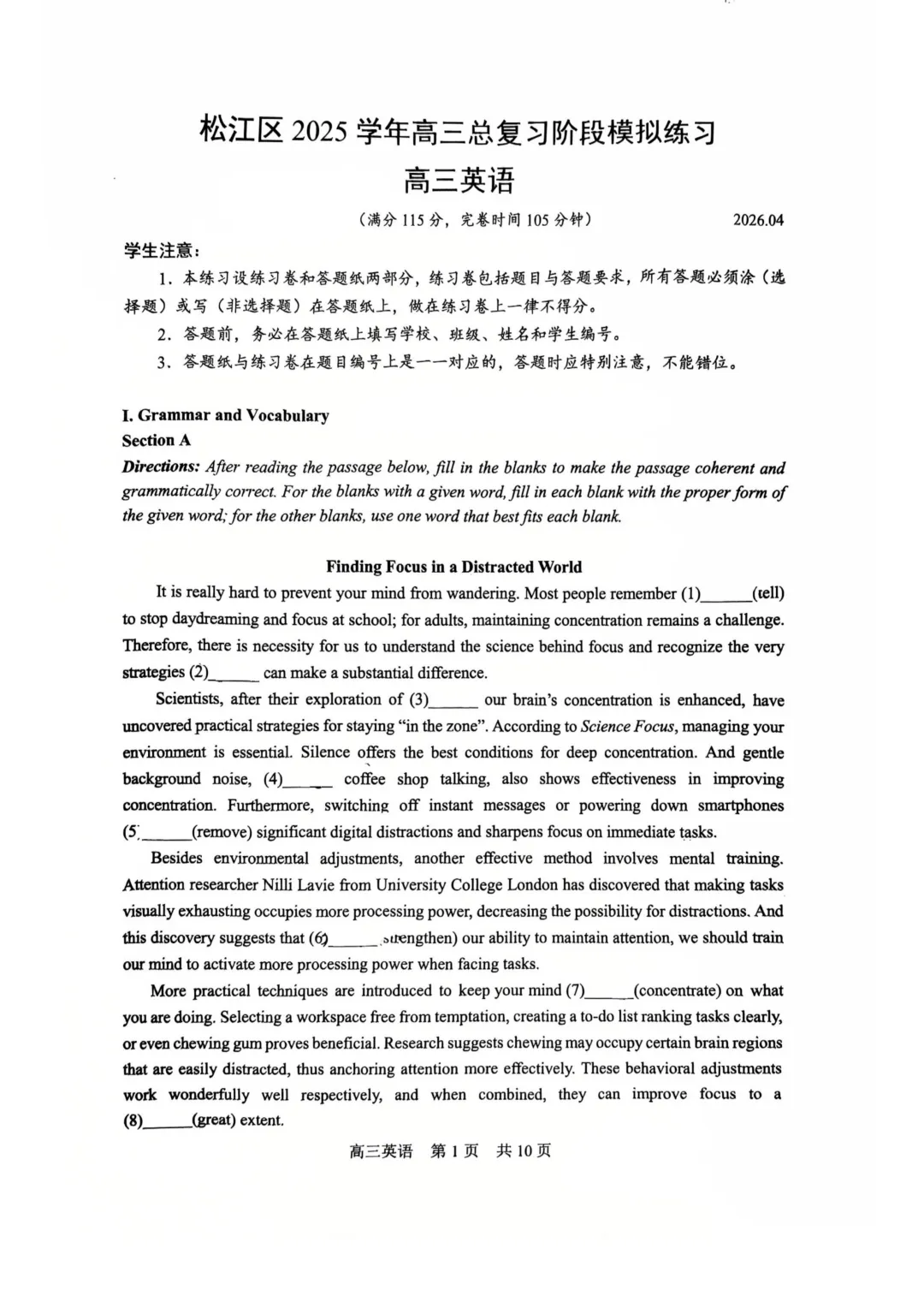 当前位置:首页>考研真题>2026届最新16个区的高三二模试卷分享6!