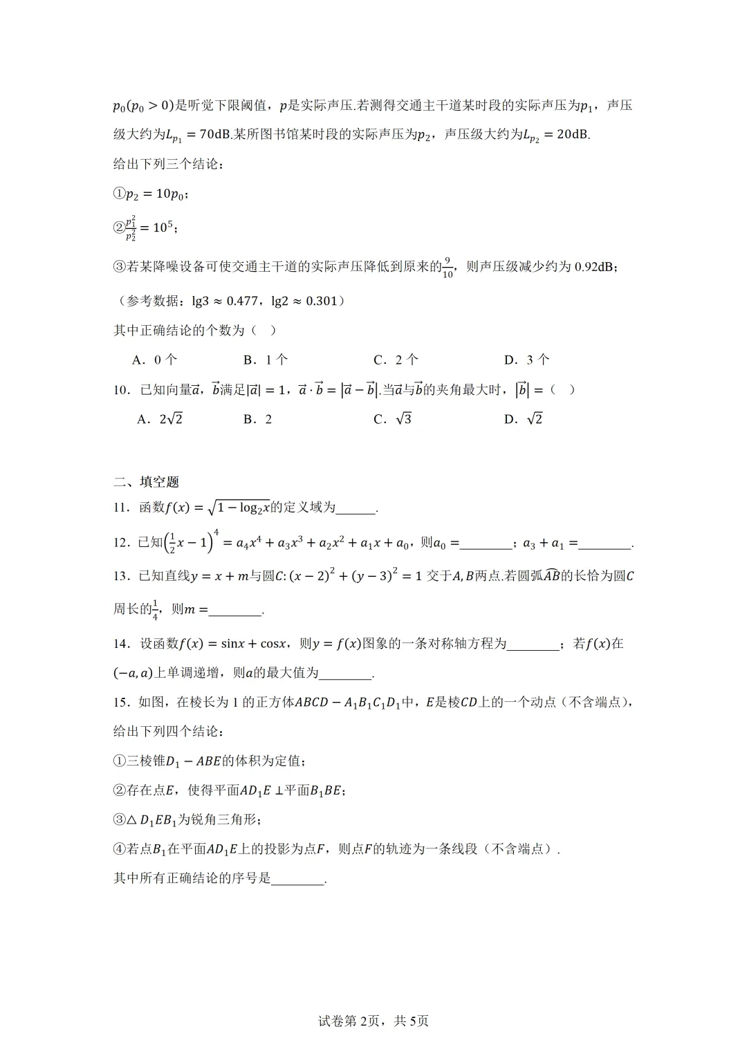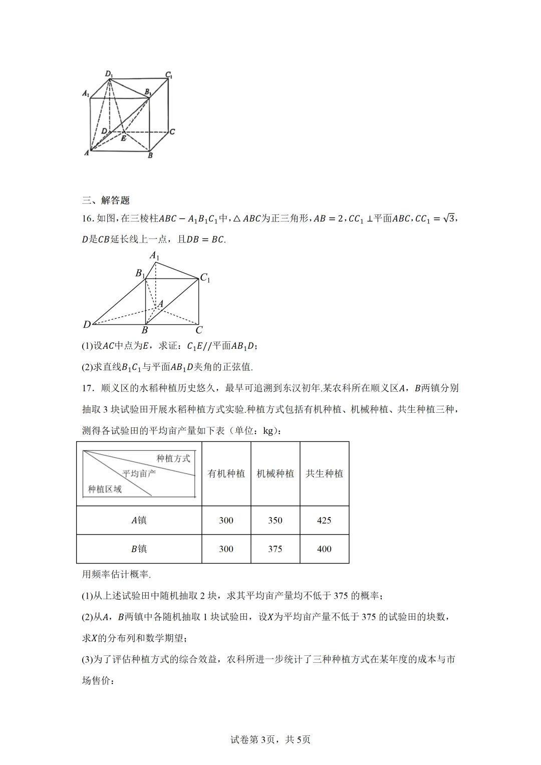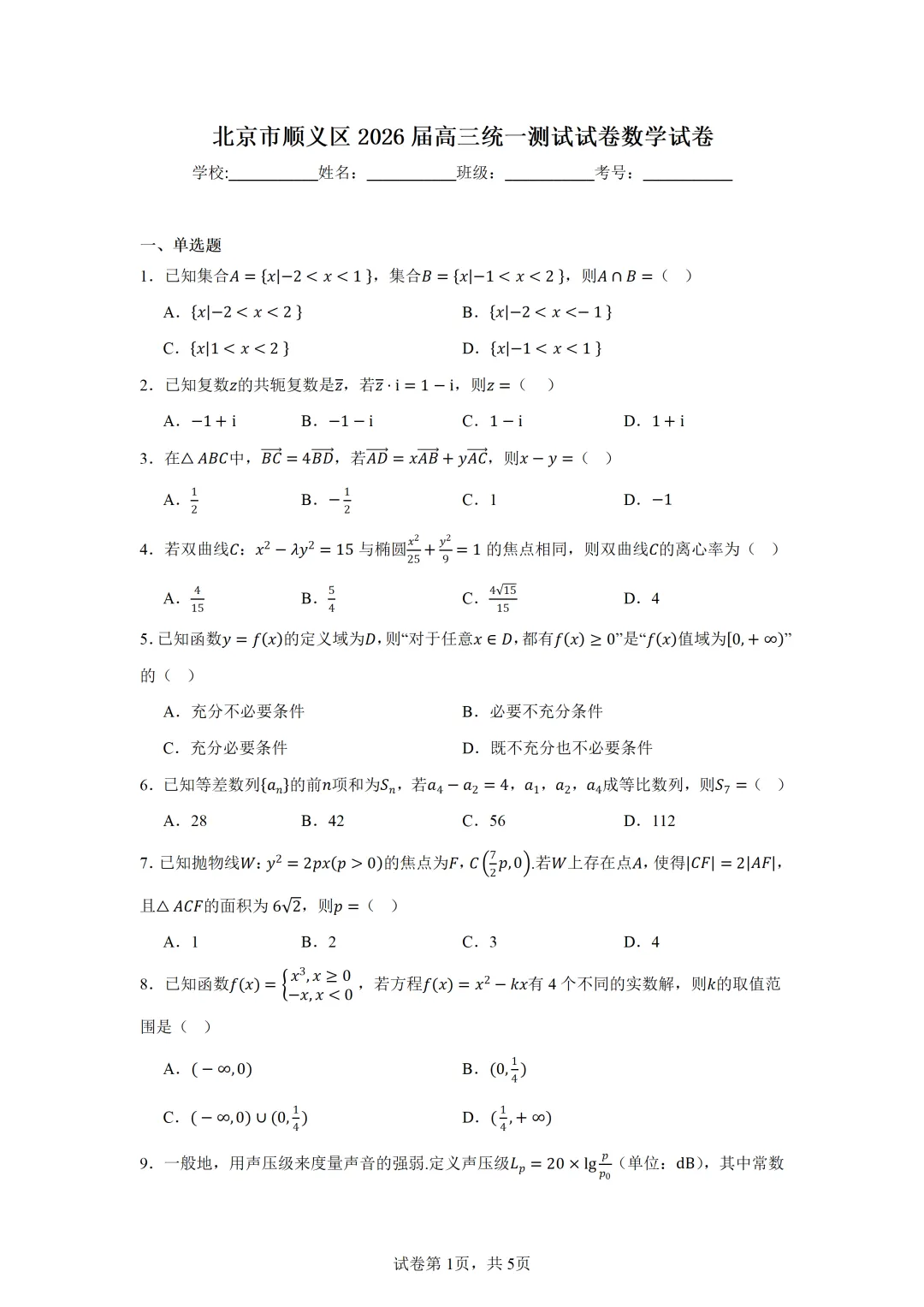 >北京市顺义区2026届高三统一测试试卷数学试卷