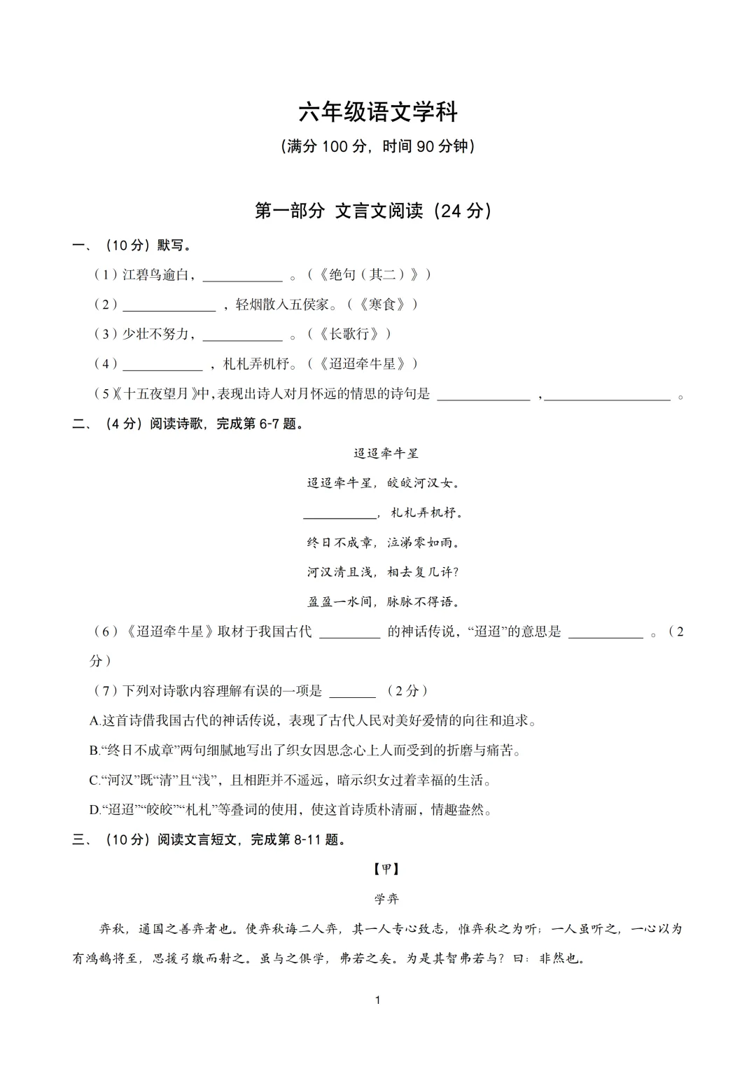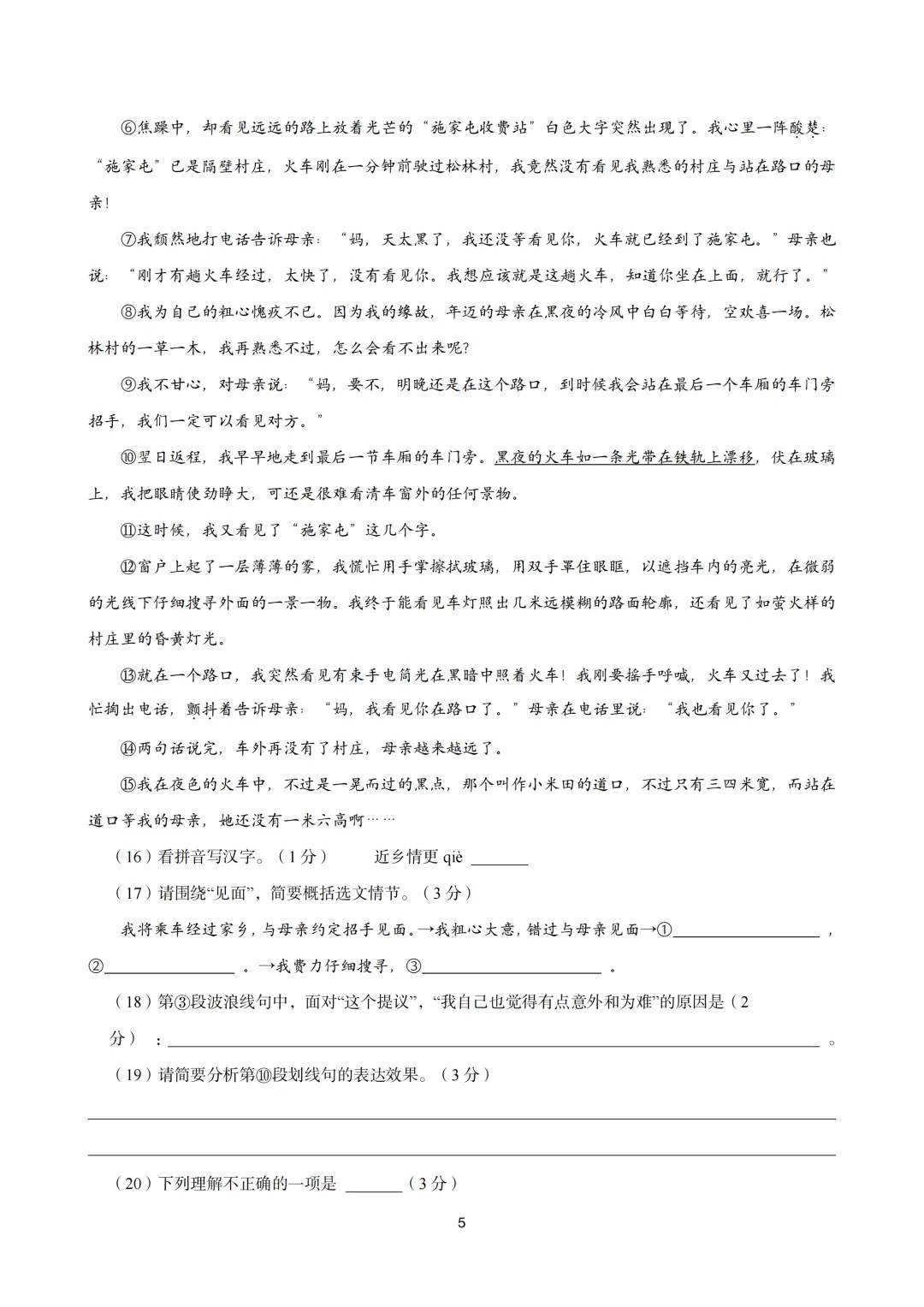 通过网盘分享的文件:2024-2025学年上海市黄浦区六年级第二学期语文期中试卷及答案