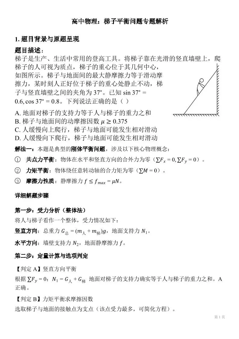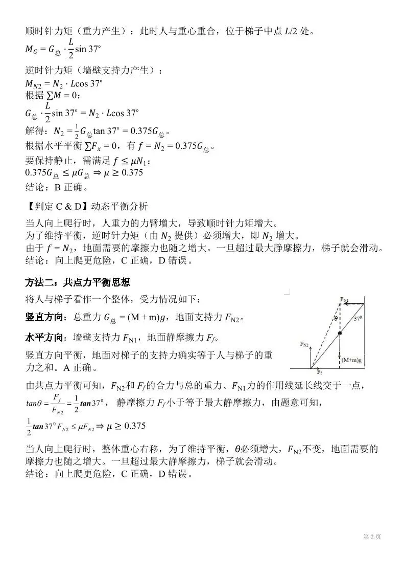 高中物理:梯子模型与力矩平衡专题解析(word版)