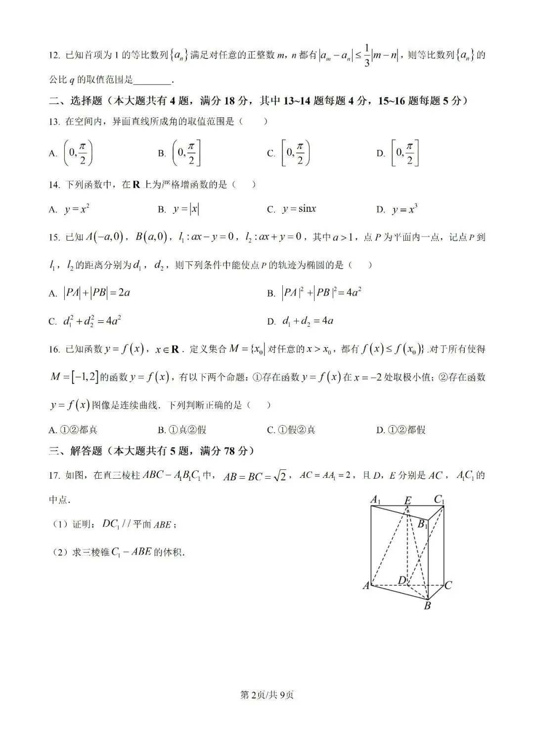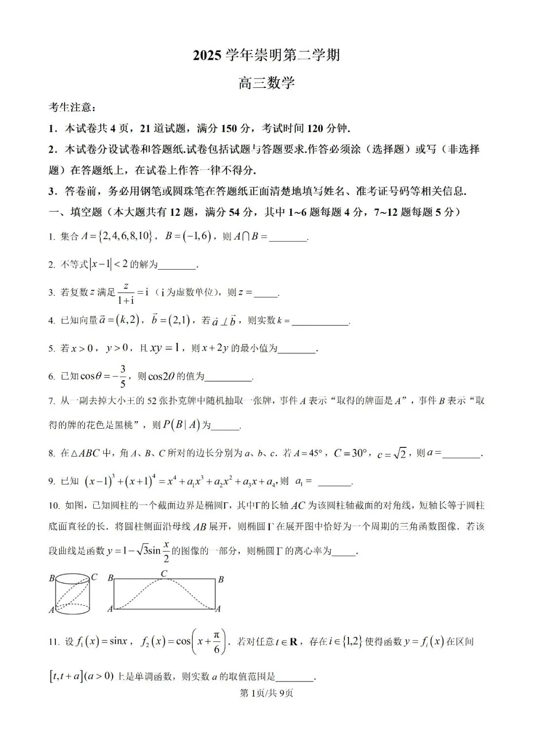 通过网盘分享的文件:上海市崇明区2026届高三下学期第二次模拟考试数学试卷.docx