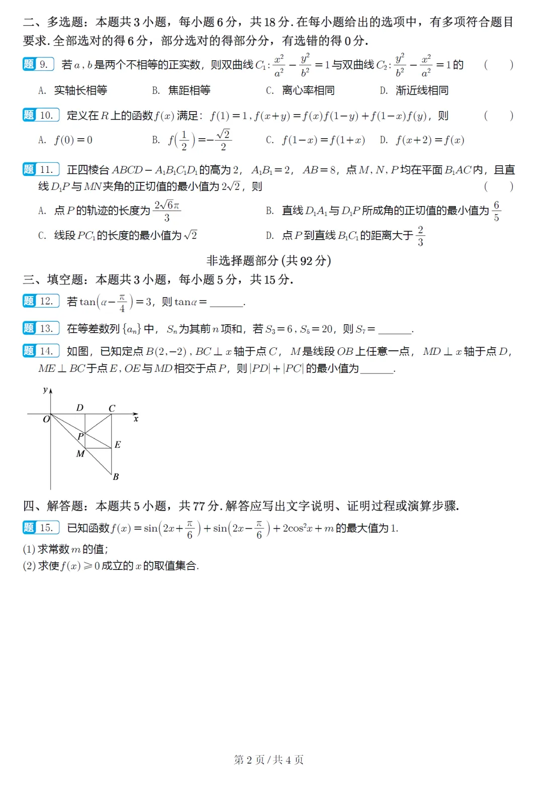 218.福建莆田市高三二模数学试卷及逐题解析(2026.3)
