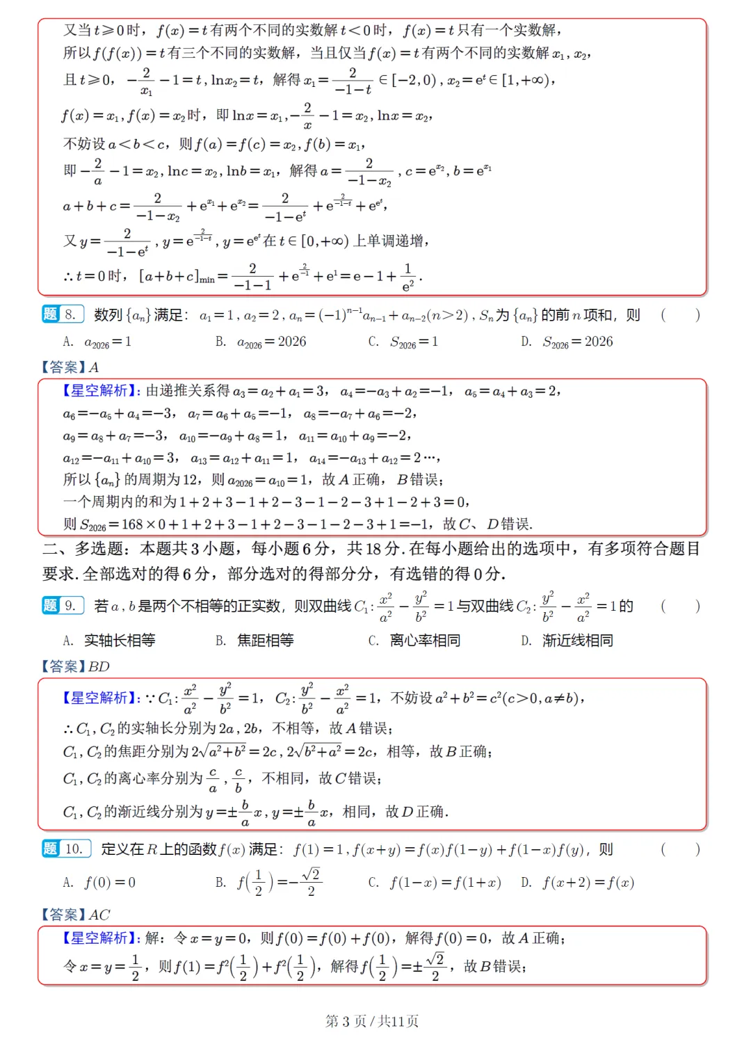 235.湖北省黄冈中学等十一校高三数学试卷及逐题解析(2026.3)