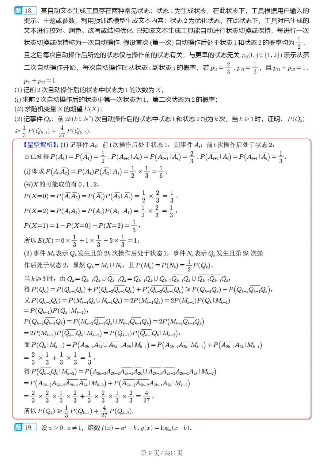 211.河南九师联盟高三开学联考数学试卷及逐题解析(2026.3)
