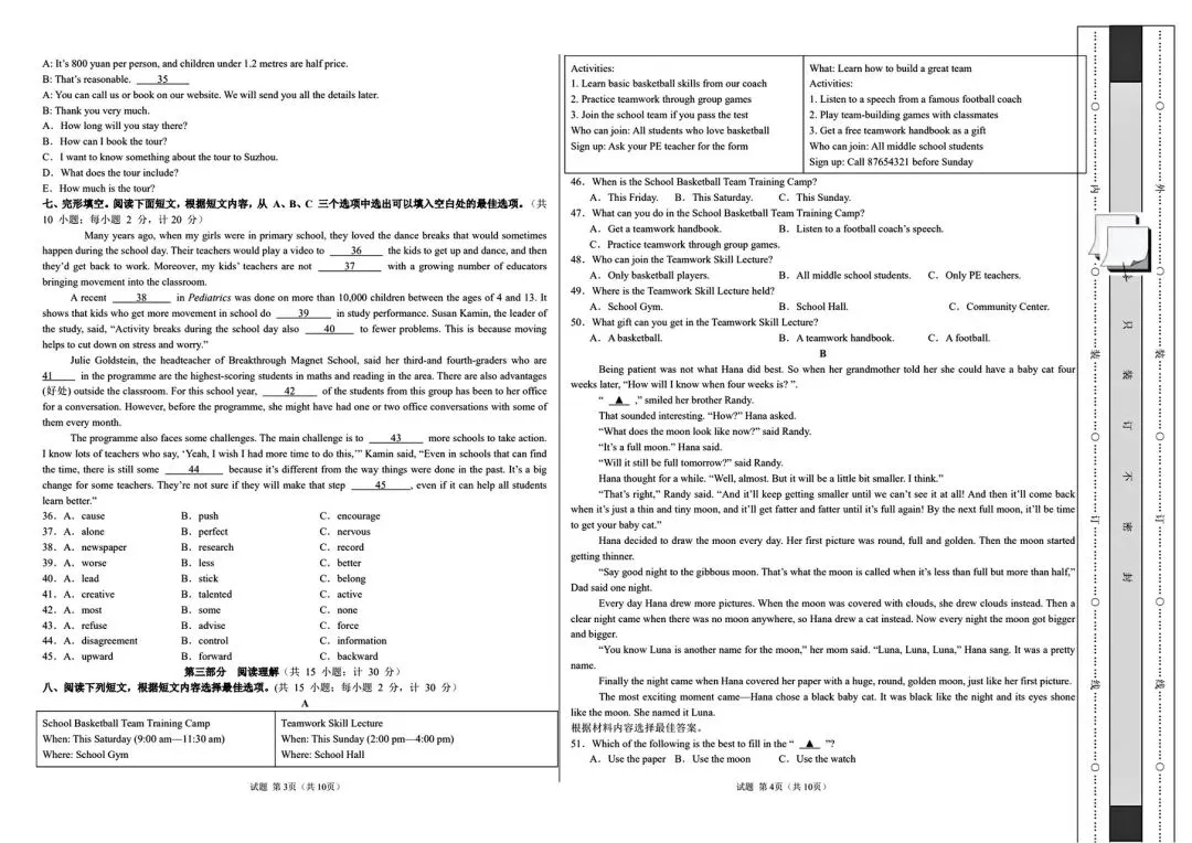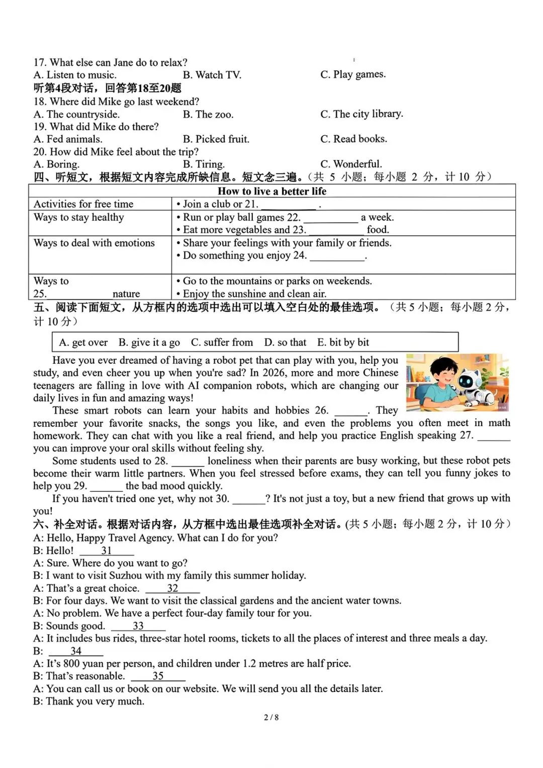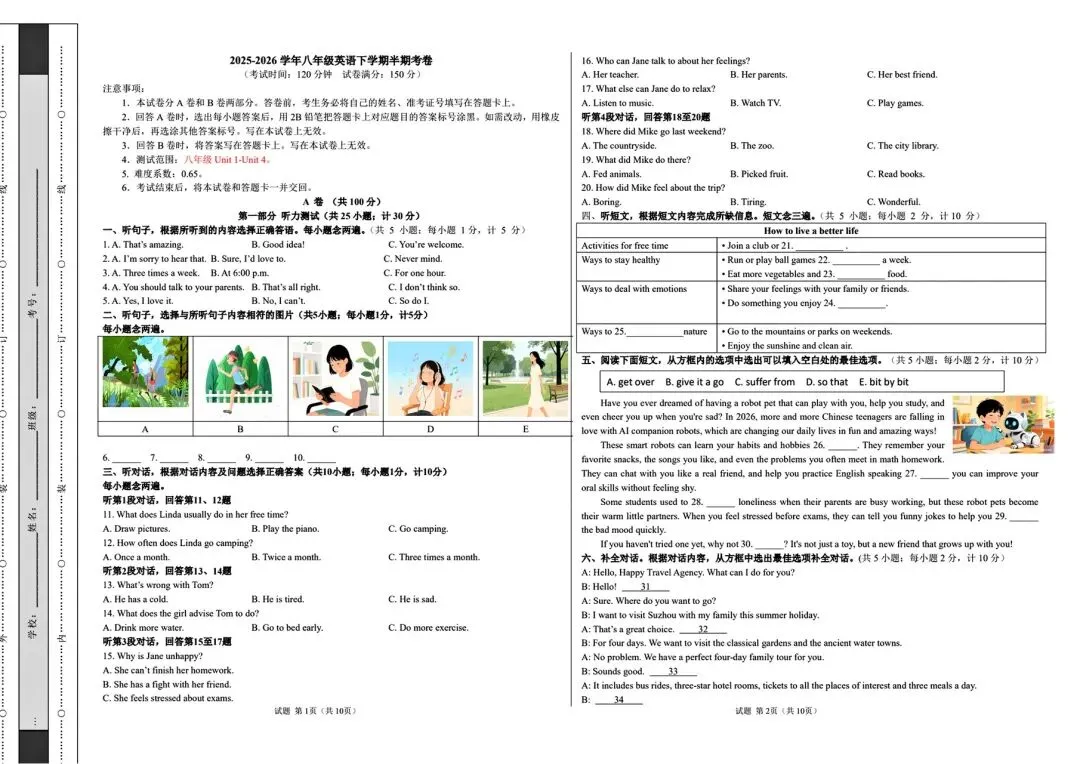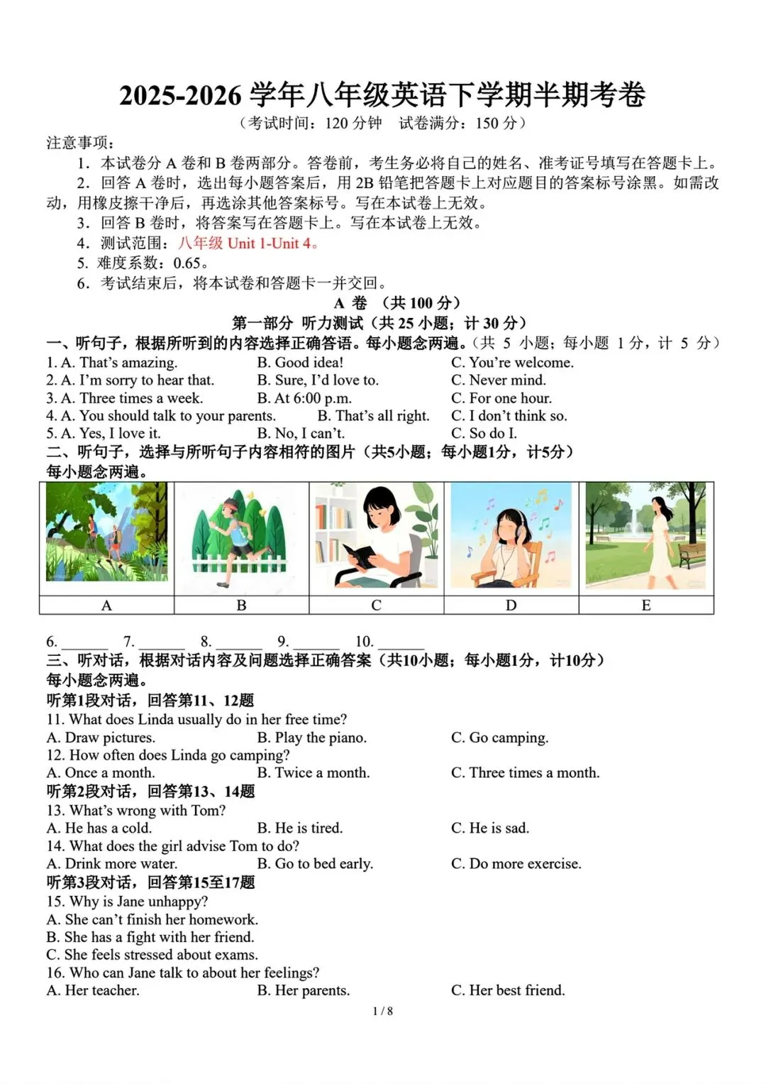 24新人教版八下英语 期中模拟试卷1 (带听力+答案)