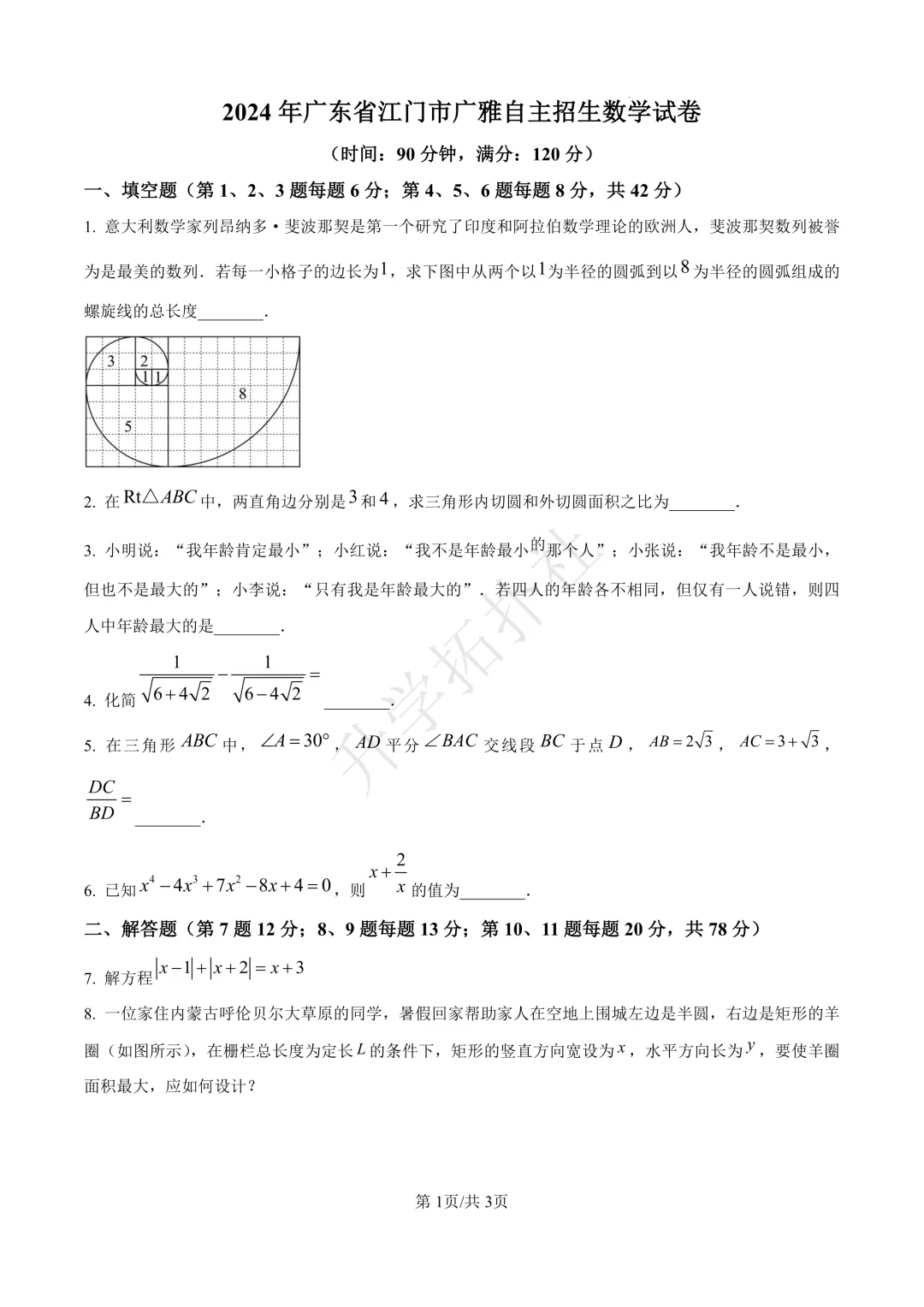 左右滑动查看全卷