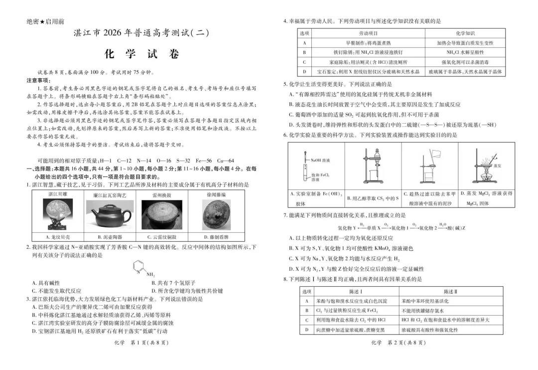 作者寄语:2026届湛江二模化学试卷+答案,7天有效领取,手慢无!!!
