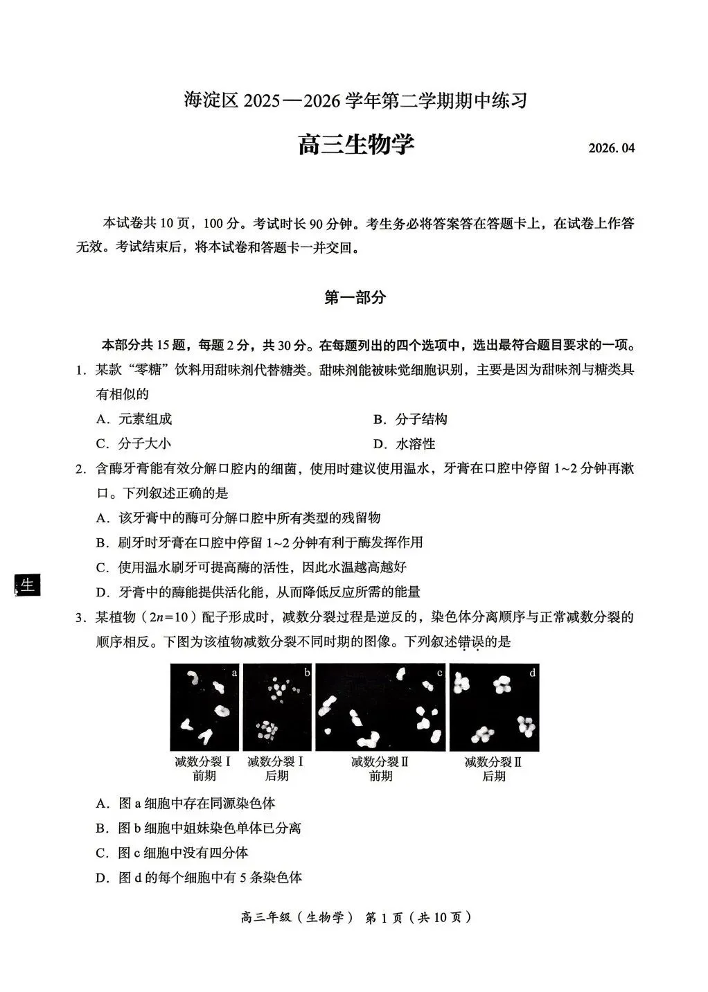 2026海淀一模