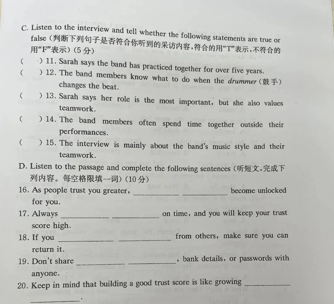 第一部分:听力