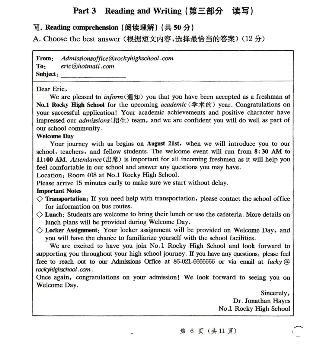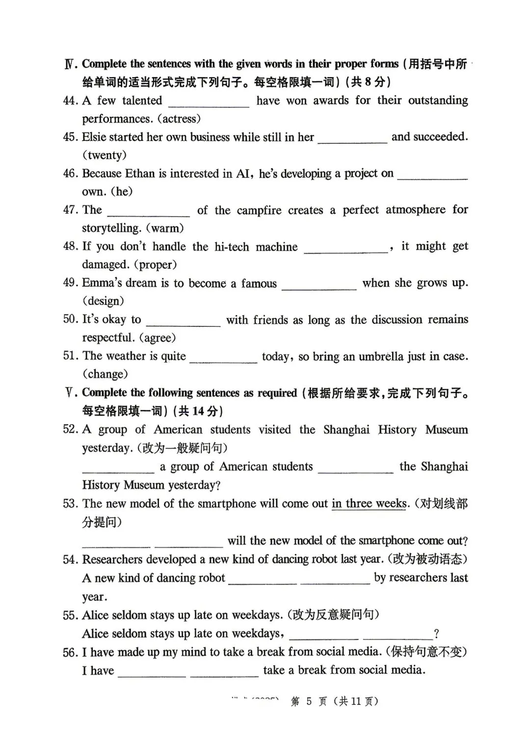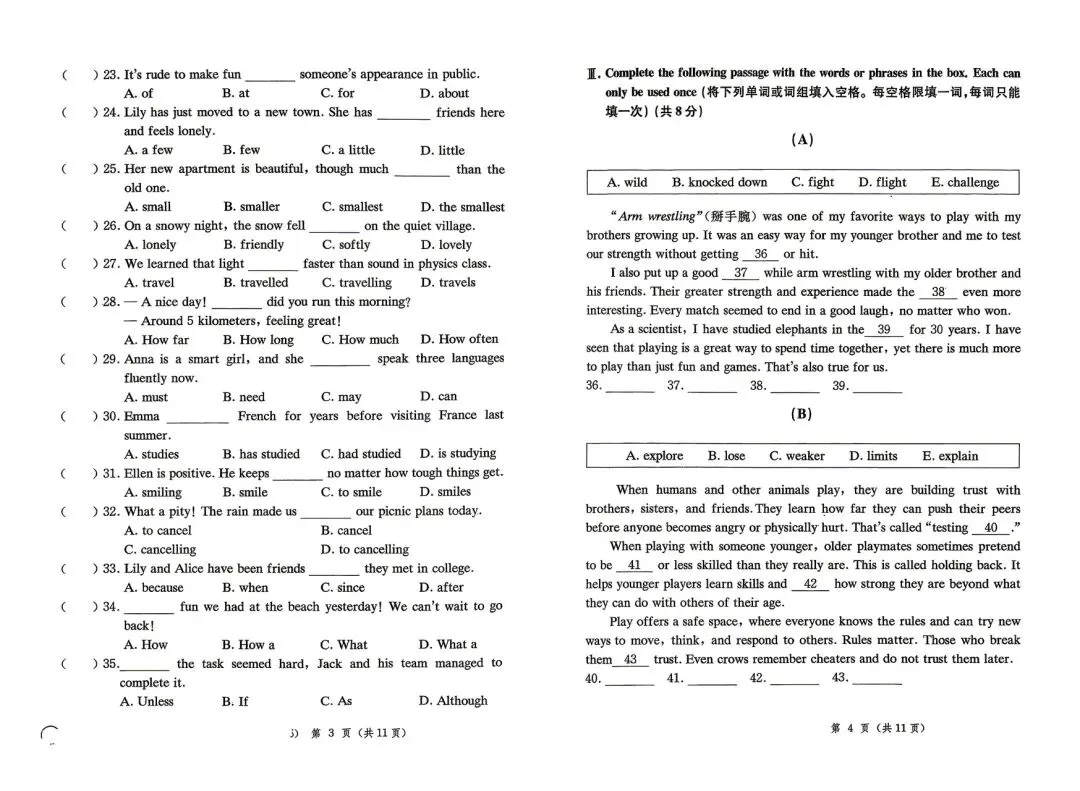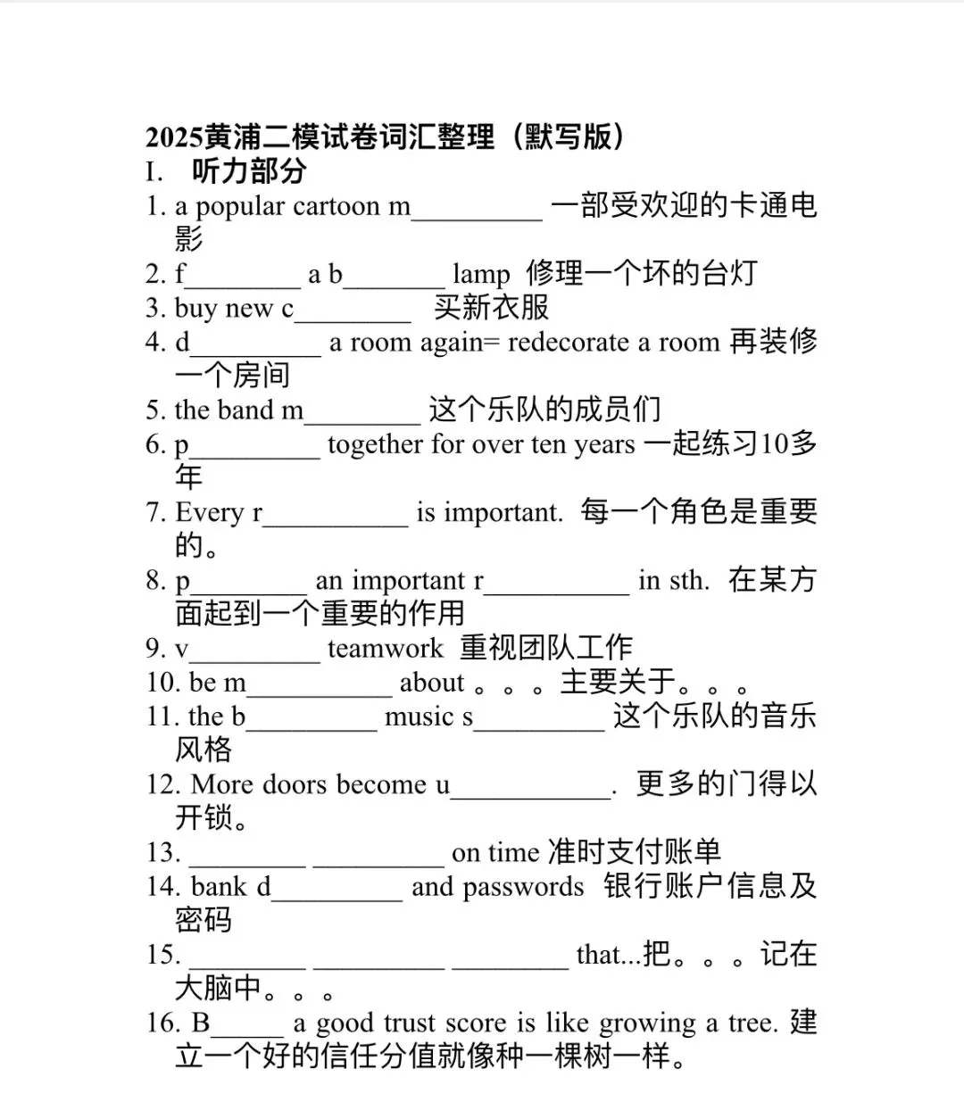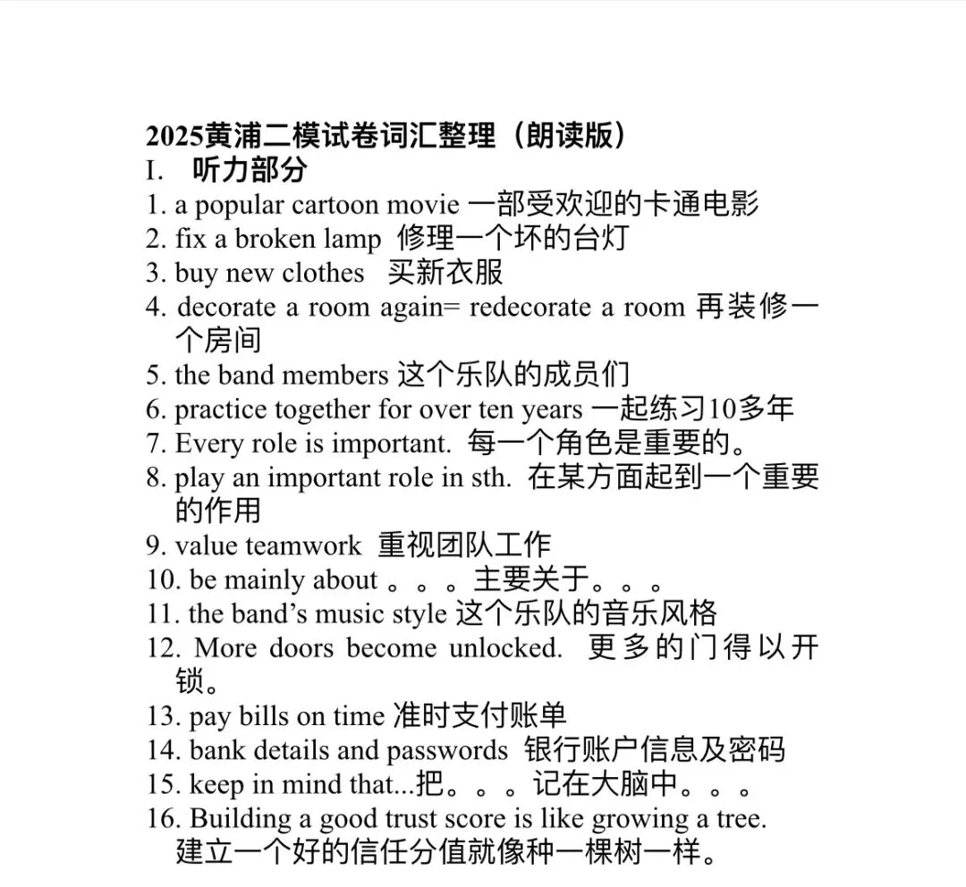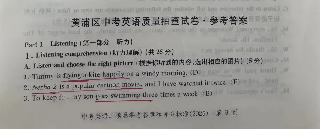 这一周给学生做了一份2025年的初三黄浦区二模卷。考虑到班级学生的整体水平比较弱,我没有要求学生做全卷,而是选取了其中的几个部分来练习:
