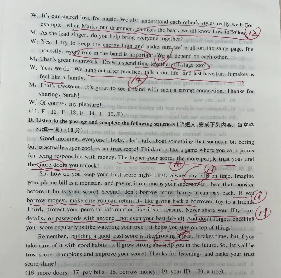 听力原文及答案: