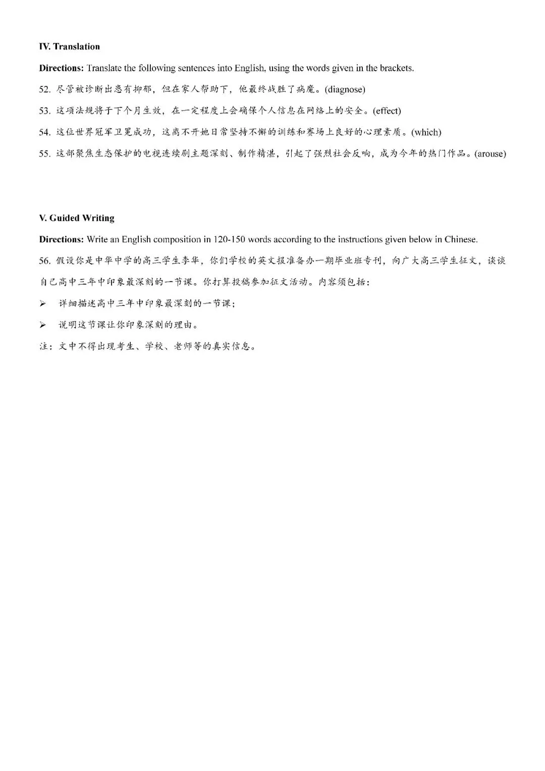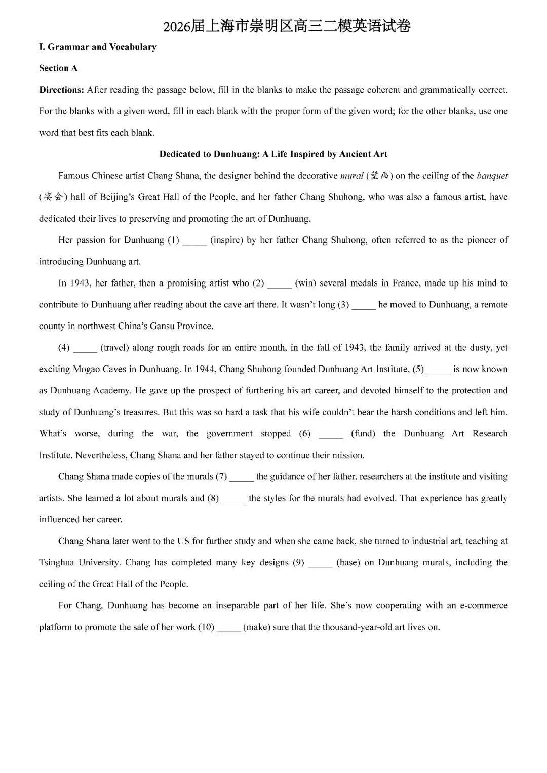 >2026届上海市崇明区高三二模英语试卷(含答案)