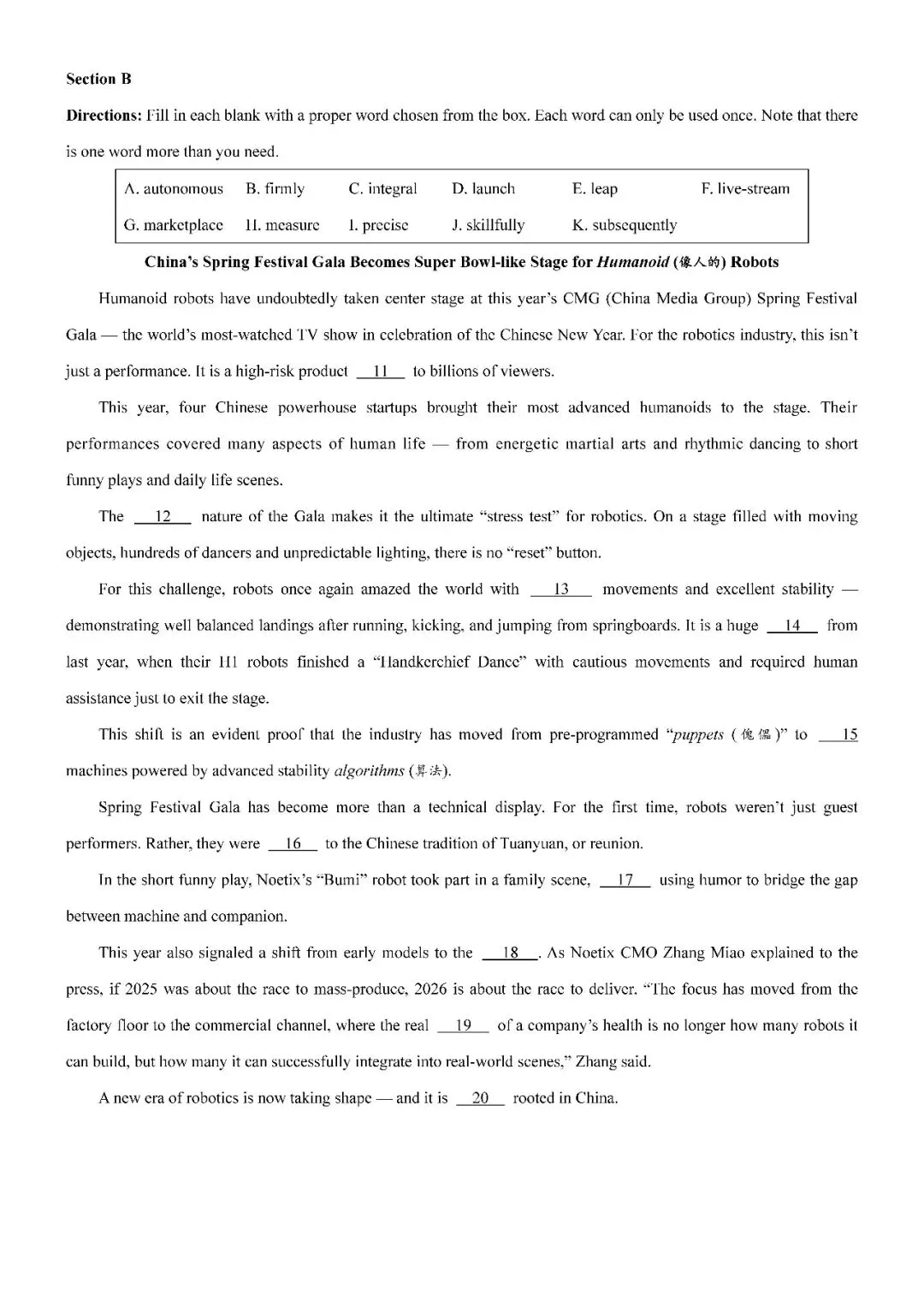 2026届上海市崇明区高三二模英语试卷(含答案)