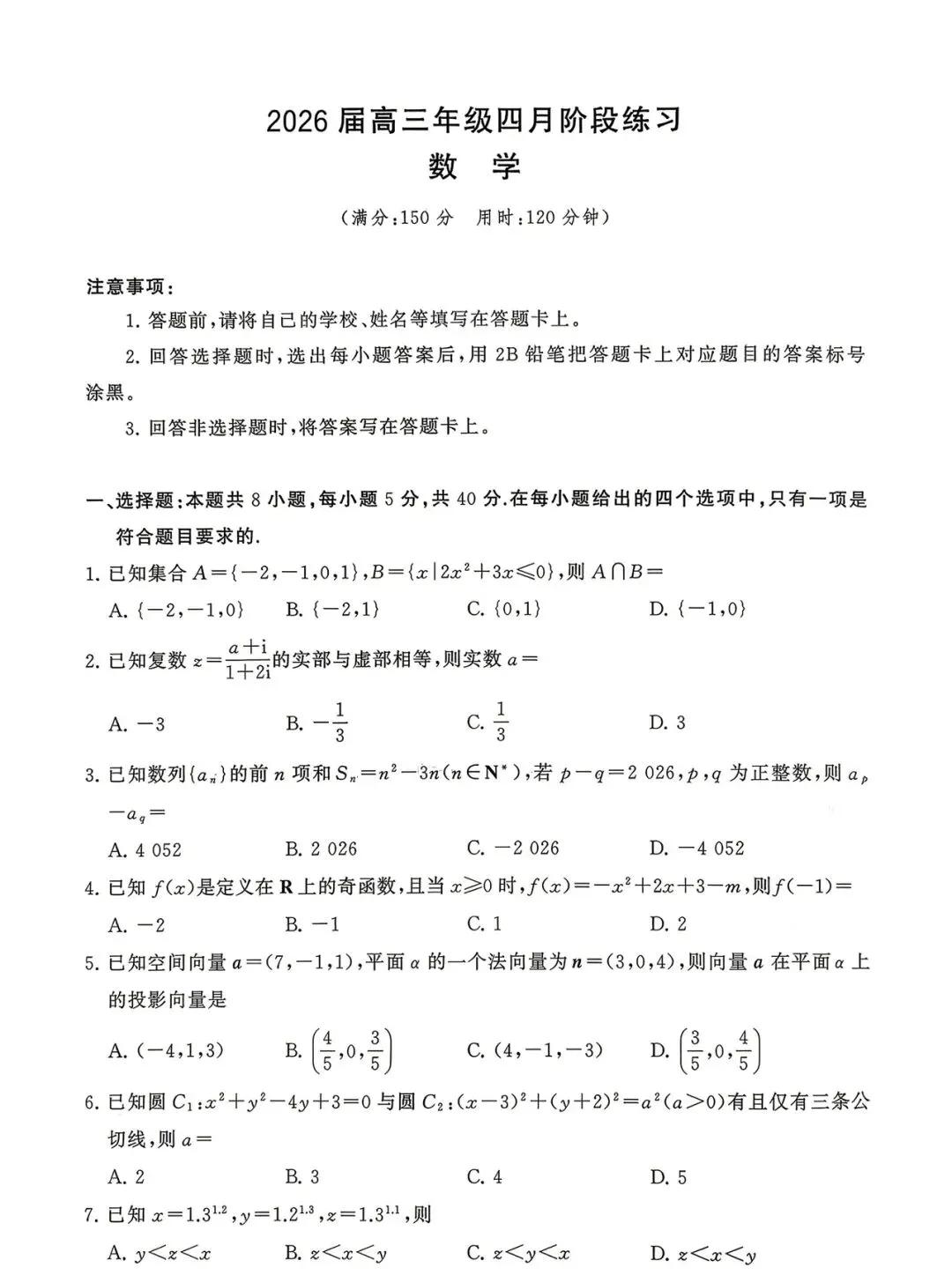 >高三|T8高三4月练习数学试卷2026届