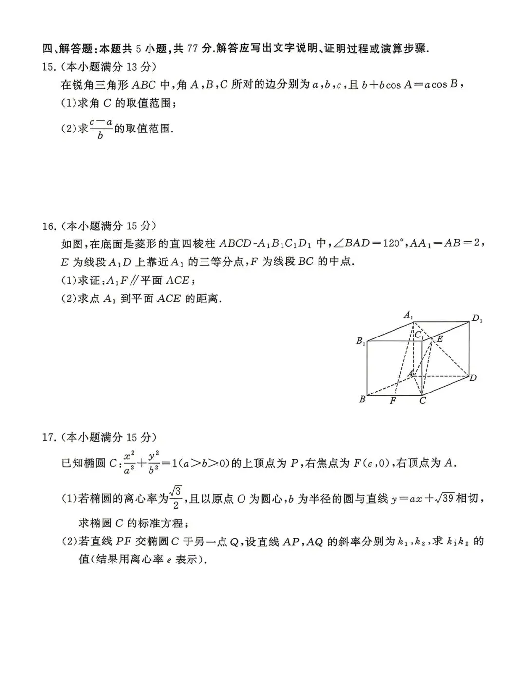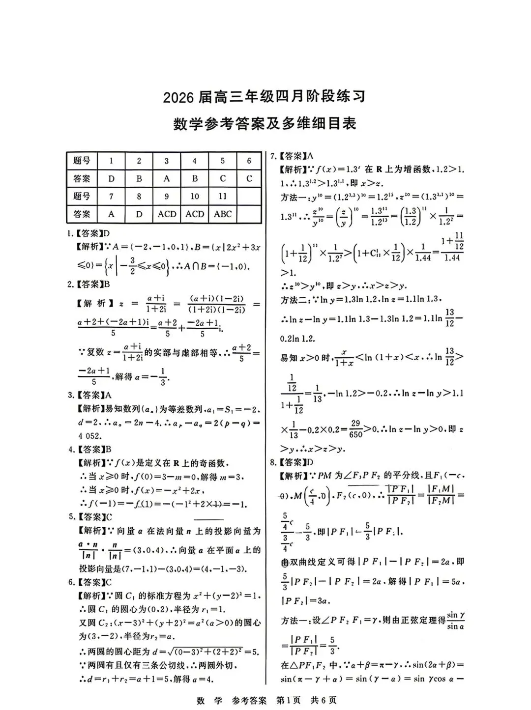 2026年4月杭州二模高清版试卷、答案与解析