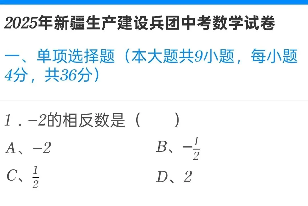 2025年新疆生产建设兵团中考数学试卷