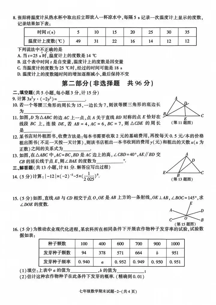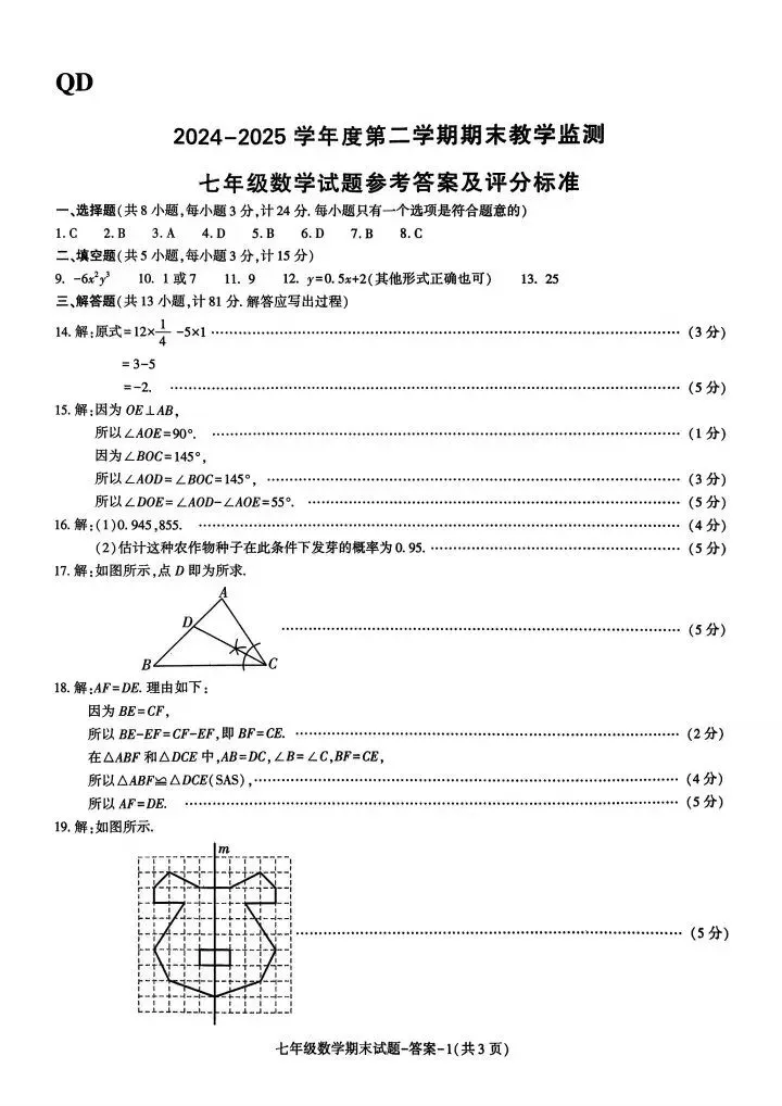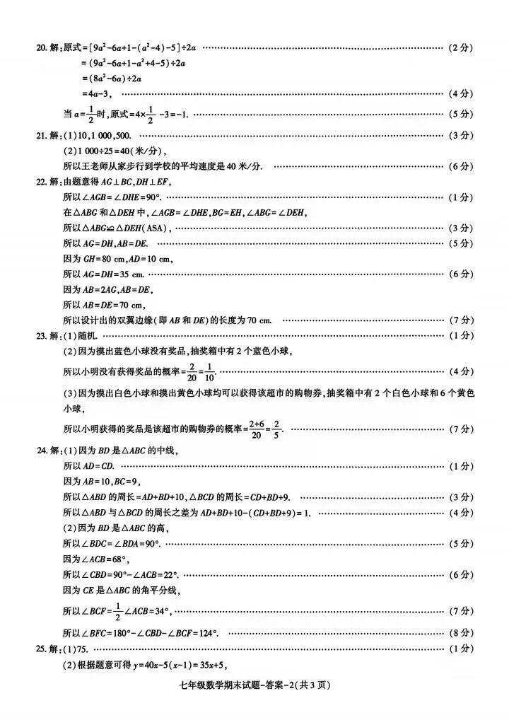 2026年春七年级下册人教版数学期中考试卷【共2套】,完整电子版含答案解析含答题卡可打印