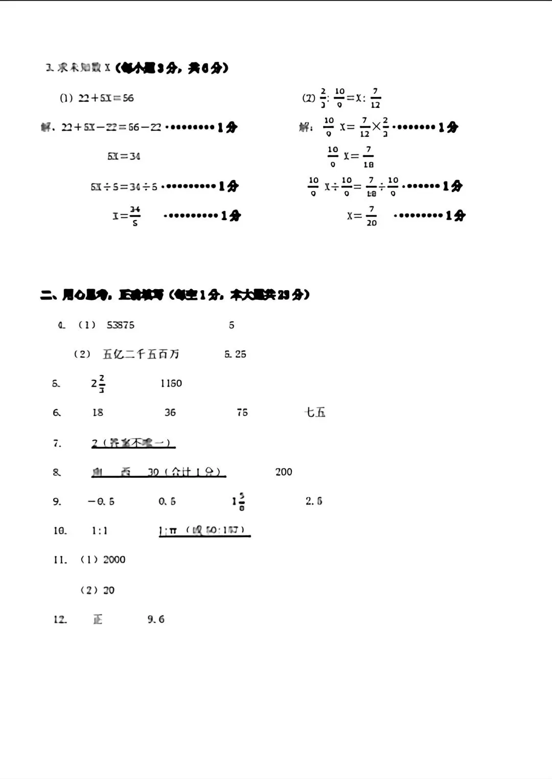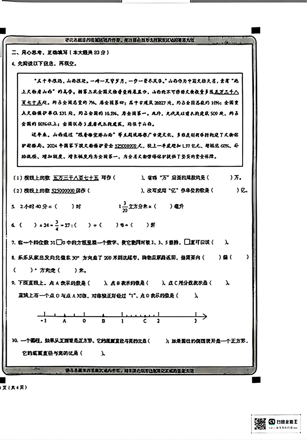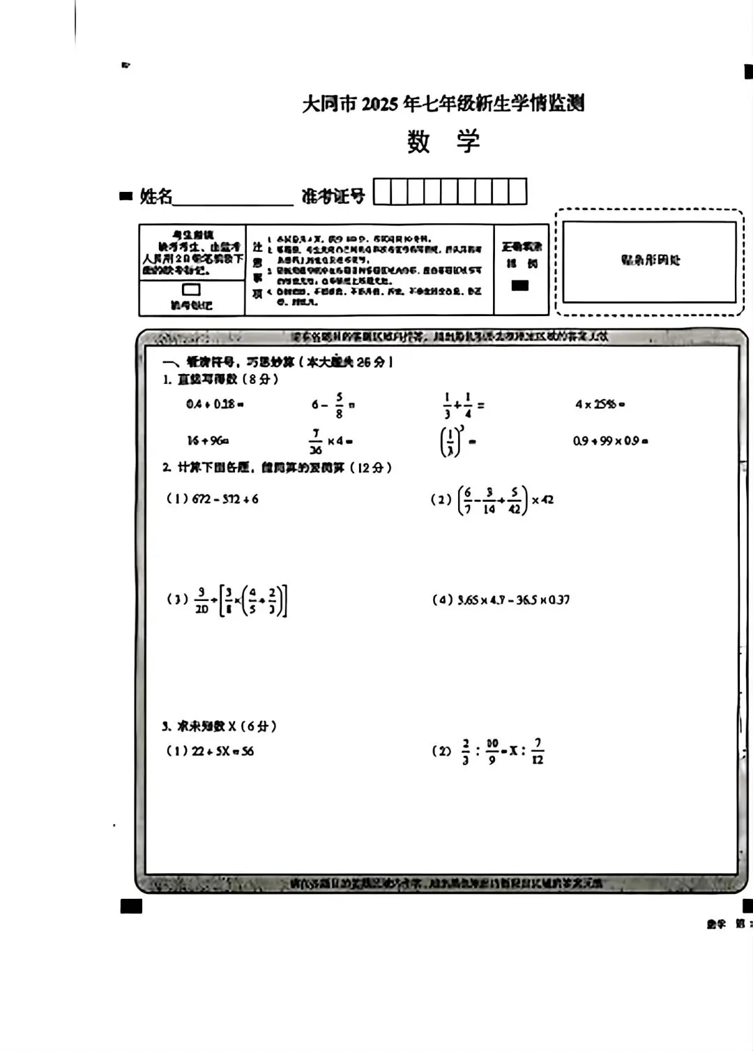 《数学试卷》大同市2025年『小升初』分班考