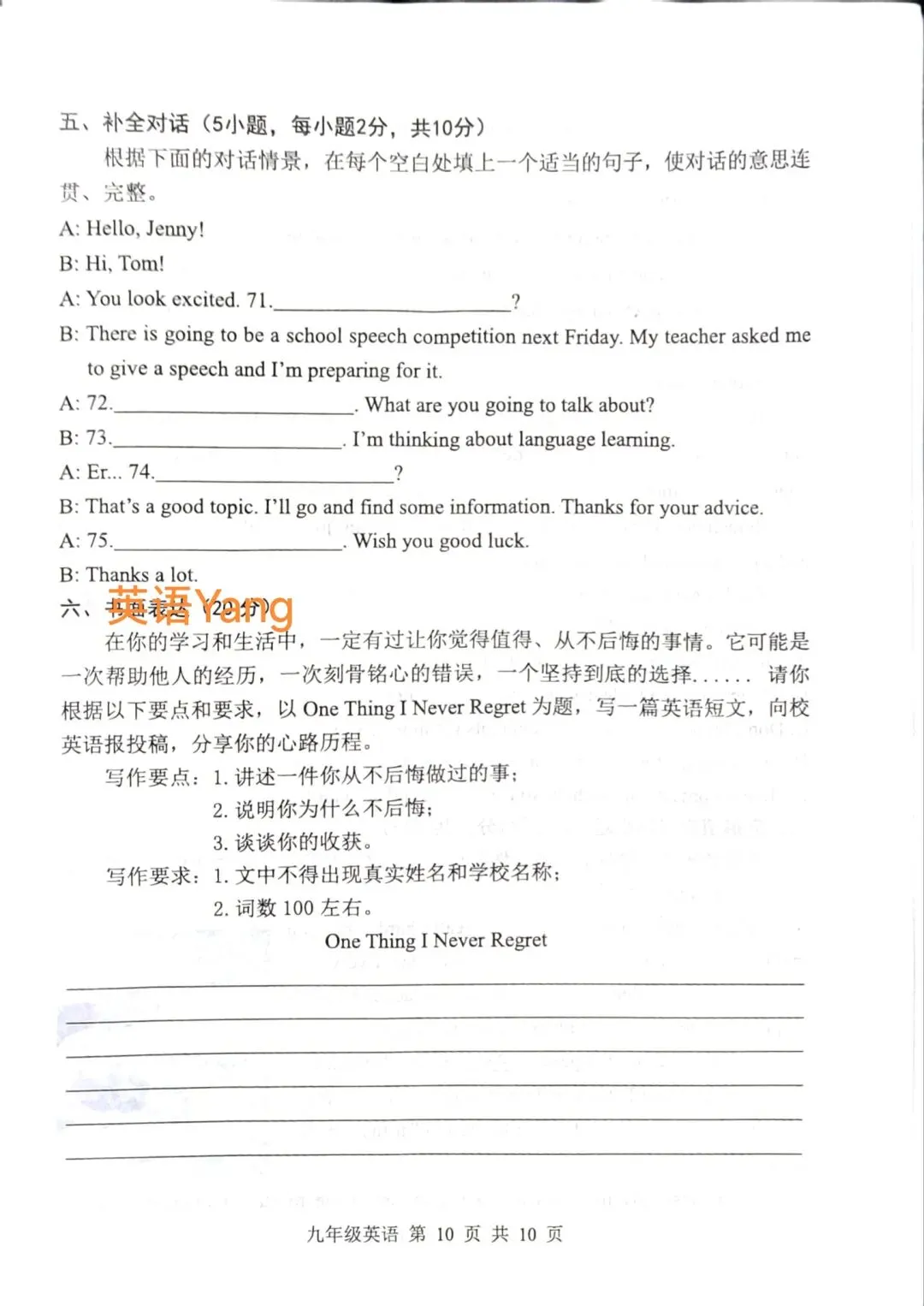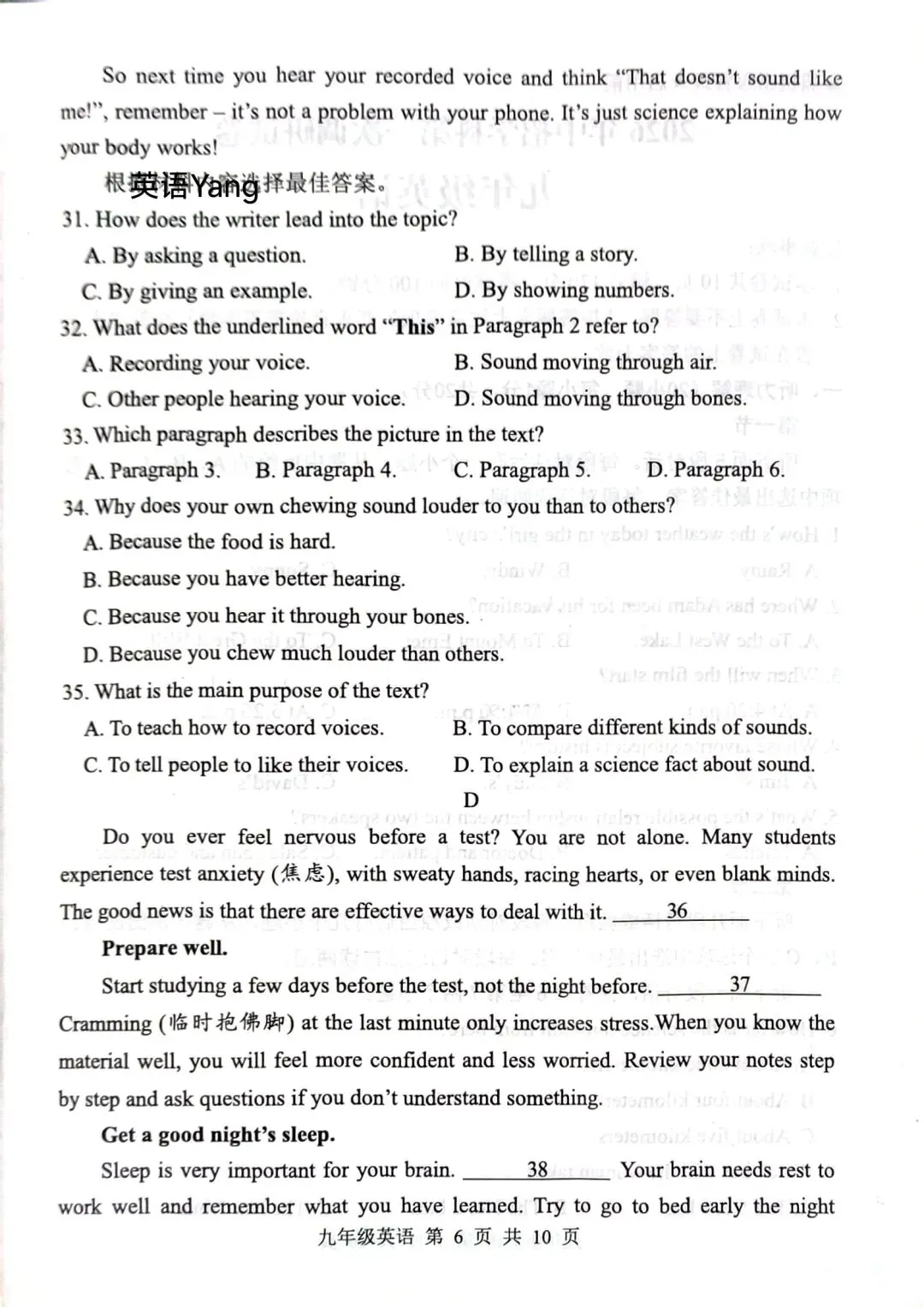 25-26郑州外国语中考一模试卷(附听力及答案)