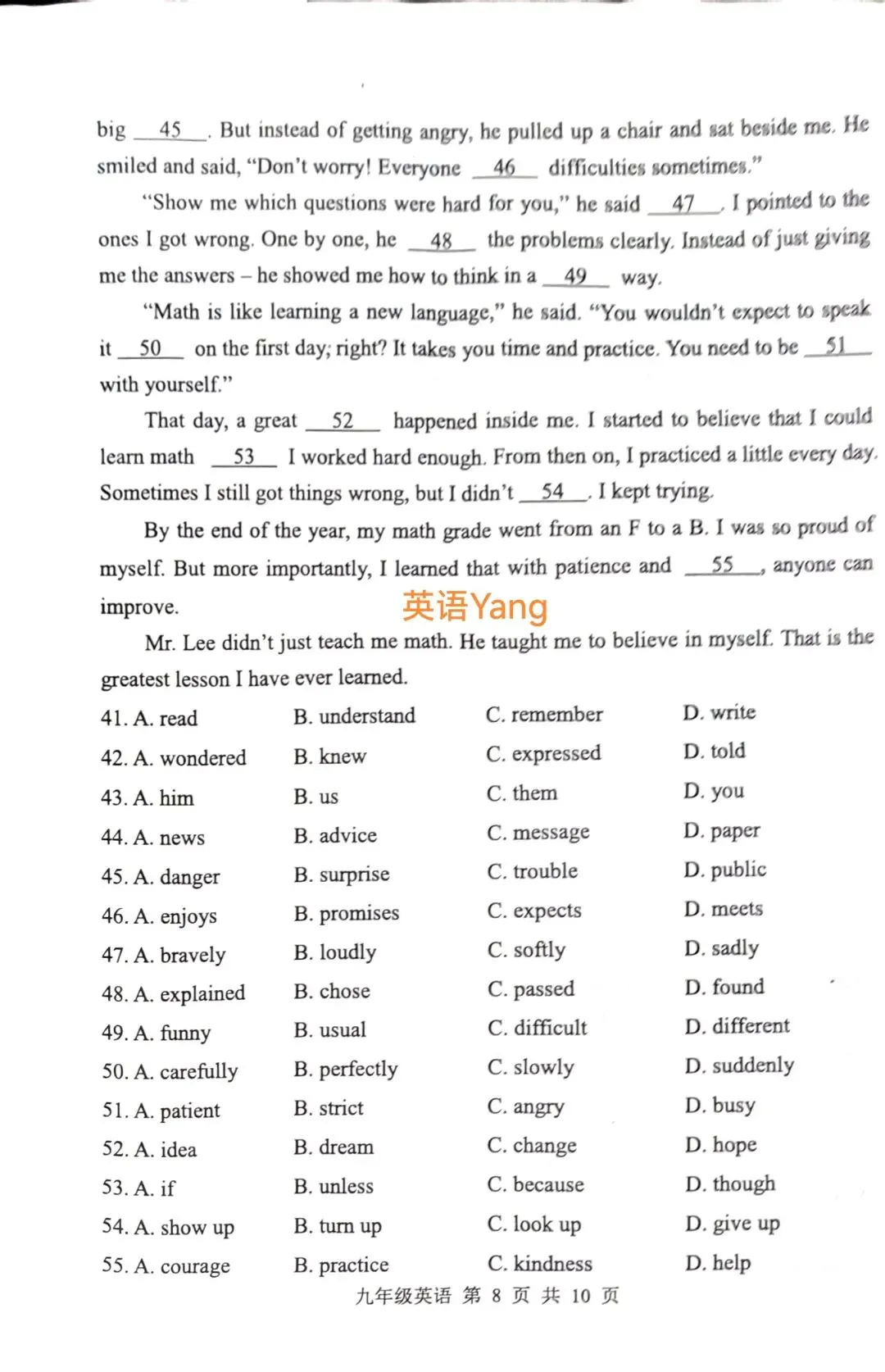 2025年上海市黄浦区初三英语二模试卷分享:部分习题+听力音频+参考答案+词汇整理单(朗读版+默写版)