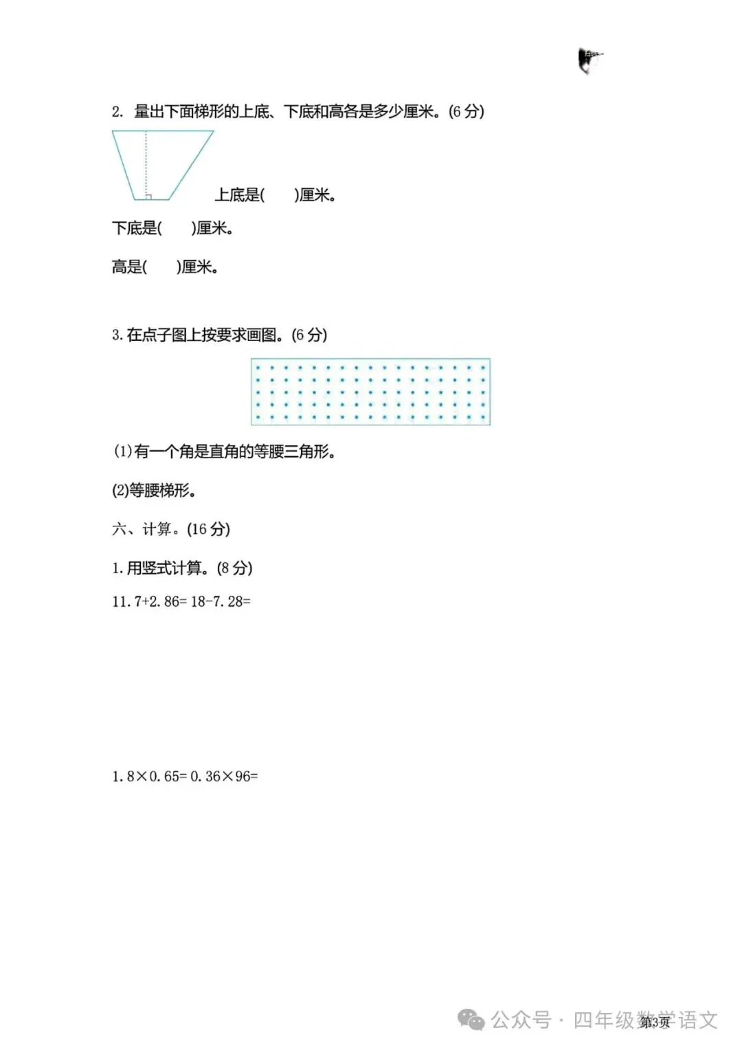 五、在点子图上画一个平行四边形和一个直角梯形。