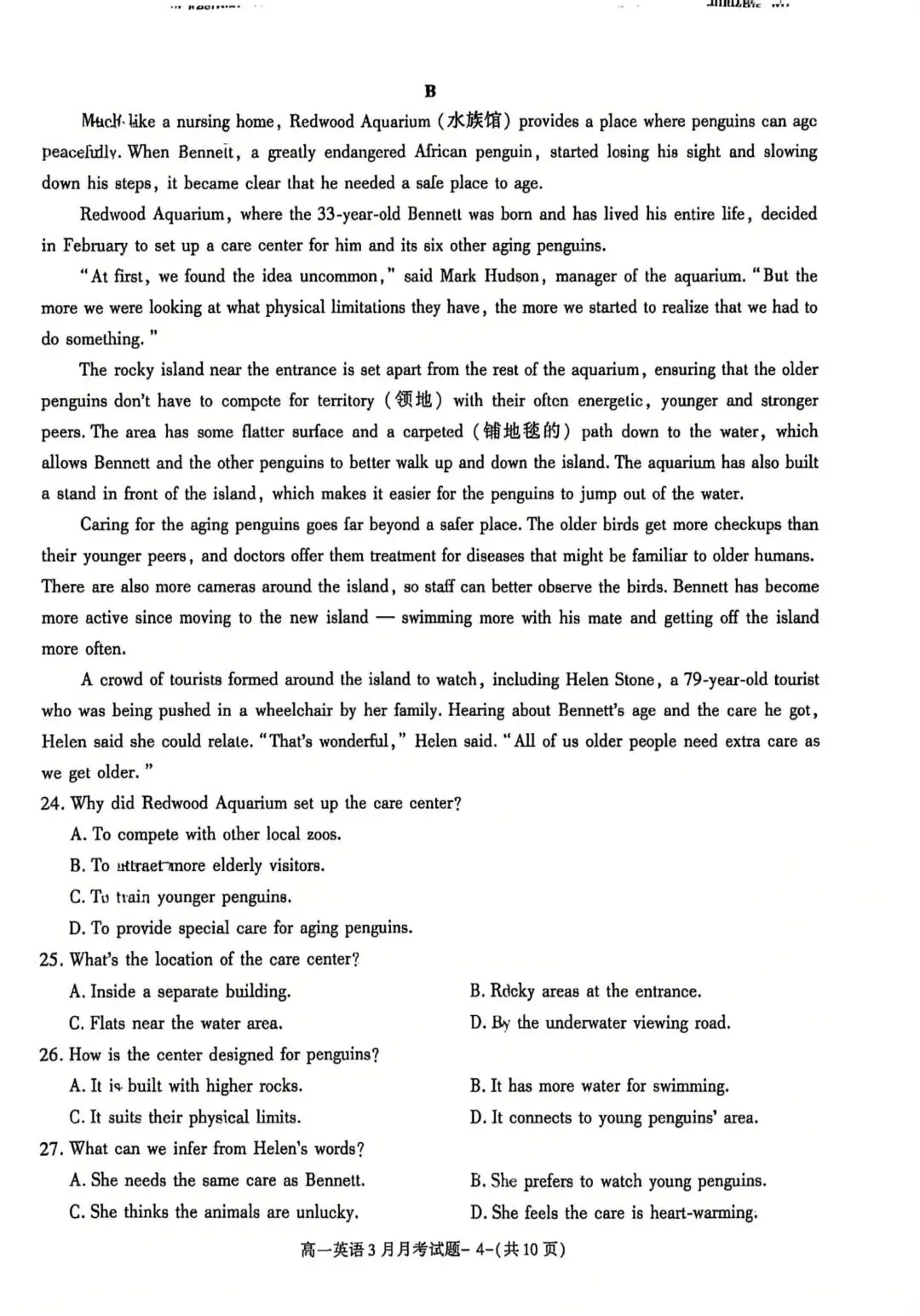 · B篇(企鹅养老)情感温馨,推断题不难。