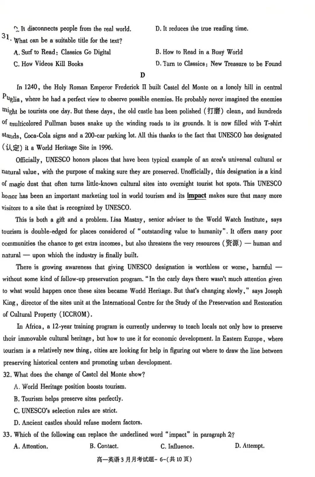 · 阅读D篇中“impact”的词义推测及对UNESCO双重影响的概括。