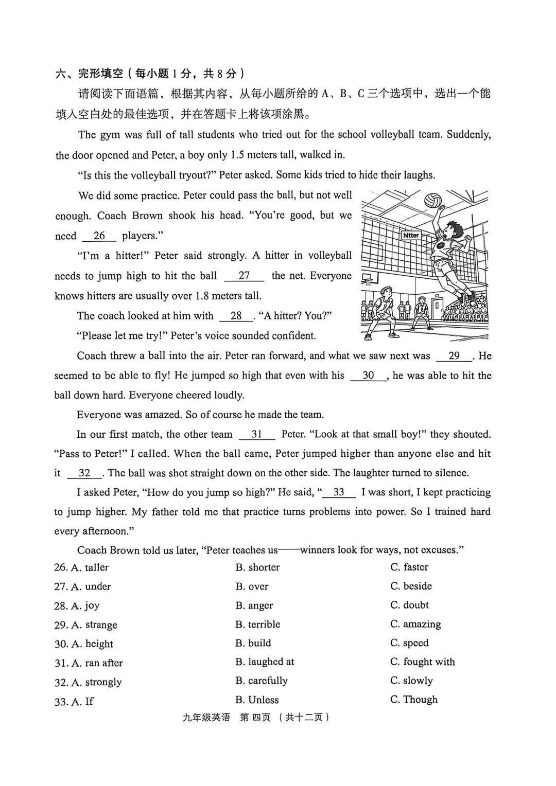 >【九英语试卷+听力】2026年孝义市第一次中考模拟考试题(卷)