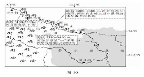 (1)说明黄河源采日玛一宁木特河段各段河谷形态差异的成因。(6 分)